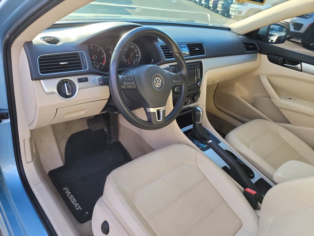 * 2013 KBB.com 10 Best Family Cars * 2013 KBB.com 10 Best New Sedans Under $25,000 Passat TDI SE, 4D Sedan, 2.0L TDI Turbodiesel, 6-Speed, FWD, Blue, 4-Wheel Disc Brakes, 8 Speakers, ABS brakes, Air Conditioning, Alloy wheels, AM/FM radio: SiriusXM, Auto-dimming Rear-View mirror, Block heater, Brake assist, Bumpers: body-color, CD player, Compass, Delay-off headlights, Driver door bin, Driver vanity mirror, Dual front impact airbags, Dual front side impact airbags, Electronic Stability Control, Four wheel independent suspension, Front anti-roll bar, Front Bucket Seats, Front Center Armrest, Front reading lights, Fully automatic headlights, Heatable Front Bucket Seats, Heated door mirrors, Heated front seats, Illuminated entry, Leather Shift Knob, Leather steering wheel, Low tire pressure warning, Occupant sensing airbag, Outside temperature display, Overhead airbag, Overhead console, Panic alarm, Passenger door bin, Passenger vanity mirror, Power door mirrors, Power driver seat, Power steering, Power windows, Radio data system, Radio: Premium 8 Touch-Screen w/6-CD Changer, Rear anti-roll bar, Rear reading lights, Rear seat center armrest, Rear window defroster, Remote keyless entry, Speed control, Speed-sensing steering, Split folding rear seat, Steering wheel mounted audio controls, Tachometer, Telescoping steering wheel, Tilt steering wheel, Traction control, Trip computer, Turn signal indicator mirrors, V-Tex Leatherette Seating Surfaces, and Variably intermittent wipers.