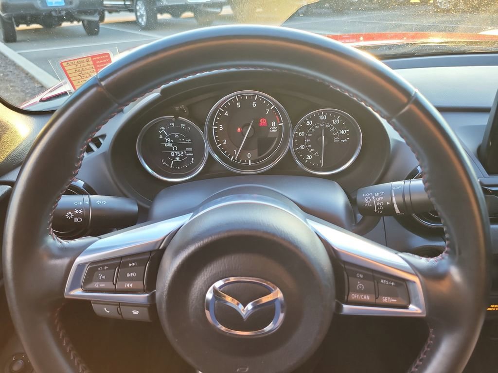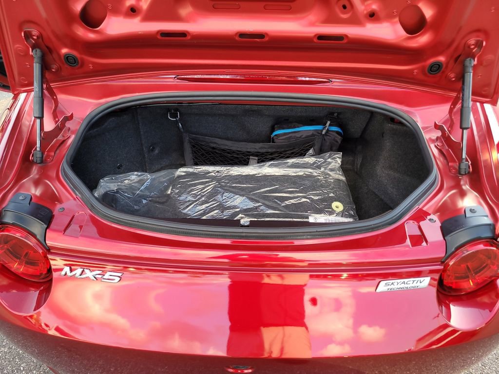 * 2019 KBB.com Brand Image Awards MX-5 Miata Sport, 2D Convertible, I4, 6-Speed Manual, RWD, Soul Red Crystal Metallic, Black Cloth, 4-Wheel Disc Brakes, 6 Speakers, ABS brakes, Air Conditioning, Alloy wheels, AM/FM radio, Brake assist, Bumpers: body-color, Cargo Net, Cloth Upholstery, Convertible roof wind blocker, Driver vanity mirror, Dual front impact airbags, Dual front side impact airbags, Electronic Stability Control, Emergency communication system: MAZDA CONNECT, Exterior Parking Camera Rear, Four wheel independent suspension, Front anti-roll bar, Front Bucket Seats, Front Center Armrest, Glass rear window, Illuminated entry, Leather Shift Knob, Low tire pressure warning, MAZDA CONNECT Infotainment System, Occupant sensing airbag, Outside temperature display, Panic alarm, Passenger vanity mirror, Power door mirrors, Power steering, Power windows, Radio data system, Radio: AM/FM Sound System, Rear anti-roll bar, Rear window defroster, Reclining Front Bucket Seats, Remote keyless entry, Soul Red Crystal Paint Charge, Speed control, Speed-sensing steering, Sport steering wheel, Steering wheel mounted audio controls, Tachometer, Telescoping steering wheel, Tilt steering wheel, Traction control, Trip computer, Variably intermittent wipers, and Wheels: 16" x 6.5" Metallic Black Aluminum Alloy.