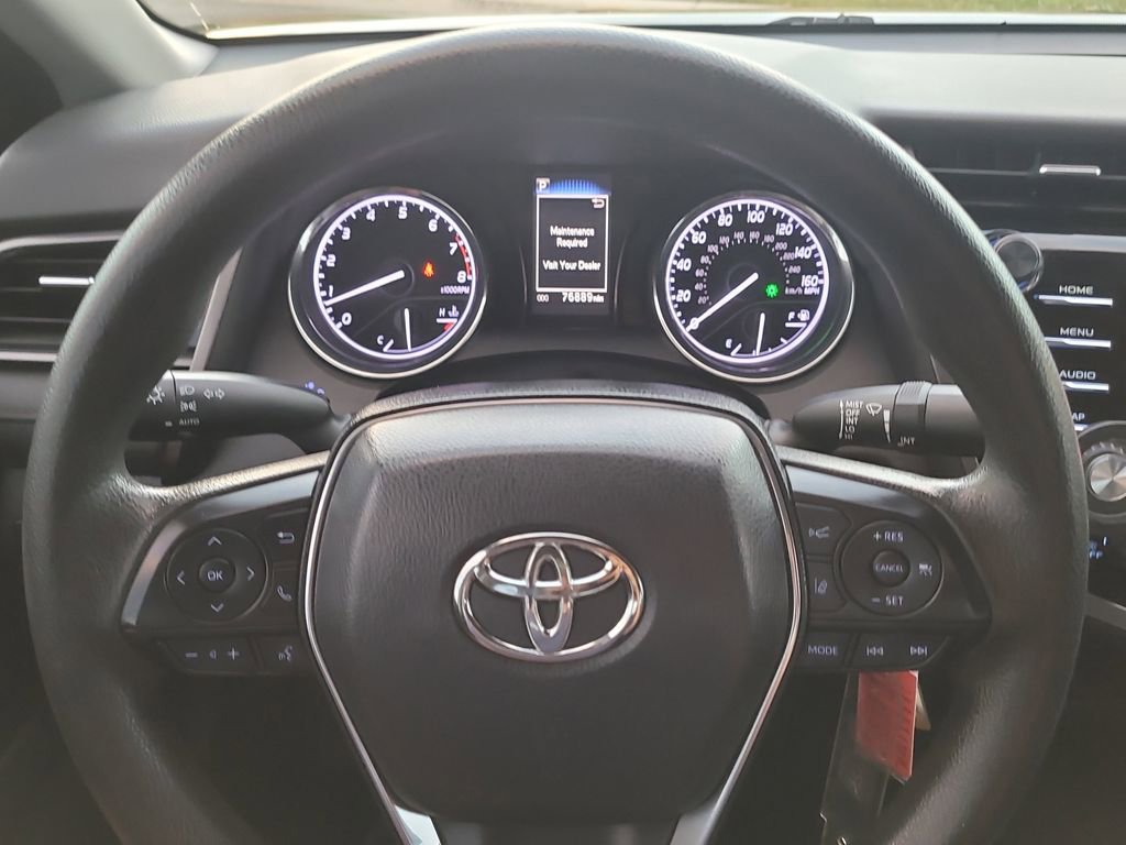 * 2019 KBB.com 10 Most Comfortable Cars Under $30,000 * 2019 KBB.com 10 Best Sedans Under $30,000 * 2019 KBB.com Brand Image Awards * 2019 KBB.com Best Resale Value Awards Camry L, 4D Sedan, 2.5L I4 DOHC 16V, 8-Speed Automatic, FWD, Midnight Black Metallic, Black Cloth, 4-Wheel Disc Brakes, 6 Speakers, 6.5J x 16" Steel Wheels, ABS brakes, Air Conditioning, AM/FM radio, Apple CarPlay, Auto High-beam Headlights, Brake assist, Bumpers: body-color, Delay-off headlights, Driver door bin, Driver vanity mirror, Dual front impact airbags, Dual front side impact airbags, Electronic Stability Control, Emergency communication system: Safety Connect, Exterior Parking Camera Rear, Fabric Seat Trim, Four wheel independent suspension, Front anti-roll bar, Front Bucket Seats, Front Center Armrest, Front reading lights, Fully automatic headlights, Illuminated entry, Knee airbag, Low tire pressure warning, Occupant sensing airbag, Outside temperature display, Overhead airbag, Overhead console, Panic alarm, Passenger door bin, Passenger vanity mirror, Power door mirrors, Power steering, Power windows, Radio data system, Radio: Entune 3.0 Audio w/App Suite, Rear anti-roll bar, Rear reading lights, Rear side impact airbag, Rear window defroster, Remote keyless entry, Speed control, Speed-sensing steering, Steering wheel mounted audio controls, Tachometer, Telescoping steering wheel, Tilt steering wheel, Traction control, Trip computer, and Variably intermittent wipers.