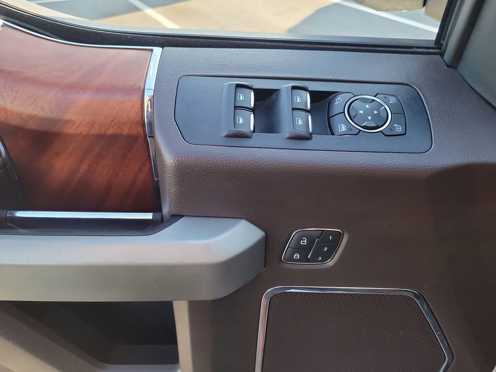 Equipment Group 600A Base, GVWR: 7,050 lbs Payload Package, F-150 King Ranch, 4D SuperCrew, 3.5L V6 EcoBoost, 10-Speed Automatic, 4WD, Stone Gray Metallic, Java Leather, Navigation System, 10 Speakers, 18" Machined-Aluminum Wheels, 3.31 Axle Ratio, 4-Wheel Disc Brakes, ABS brakes, Adjustable pedals, Air Conditioning, Alloy wheels, AM/FM radio: SiriusXM, Auto High-beam Headlights, Auto tilt-away steering wheel, Auto-dimming door mirrors, Auto-dimming Rear-View mirror, Automatic temperature control, Brake assist, Class IV Trailer Hitch Receiver, Compass, Delay-off headlights, Driver door bin, Driver vanity mirror, Dual front impact airbags, Dual front side impact airbags, Electronic Stability Control, Emergency communication system: SYNC 3 911 Assist, Exterior Parking Camera Rear, Front anti-roll bar, Front Bucket Seats, Front Center Armrest, Front dual zone A/C, Front fog lights, Front License Plate Bracket, Front reading lights, Front wheel independent suspension, Fully automatic headlights, Garage door transmitter, Genuine wood dashboard insert, Genuine wood door panel insert, Heated door mirrors, Heated front seats, Heated rear seats, Heated steering wheel, Illuminated entry, King Ranch Leather Bucket Seats, Low tire pressure warning, Memory seat, Occupant sensing airbag, Outside temperature display, Overhead airbag, Overhead console, Panic alarm, Passenger door bin, Passenger vanity mirror, Pedal memory, Power door mirrors, Power driver seat, Power passenger seat, Power steering, Power windows, Radio data system, Radio: B&O Sound System by Bang & Olufsen, Rain sensing wipers, Rear Parking Sensors, Rear reading lights, Rear seat center armrest, Rear step bumper, Rear window defroster, Remote keyless entry, Security system, SiriusXM Radio, Speed control, Speed-sensing steering, Split folding rear seat, Steering wheel memory, Steering wheel mounted audio controls, SYNC 3, Tachometer, Telescoping steering wheel, Tilt steering wheel, Traction control, Trip computer, Turn signal indicator mirrors, Twin Panel Moonroof, Variably intermittent wipers, Ventilated front seats, Voice-Activated Touchscreen Navigation, and Voltmeter.