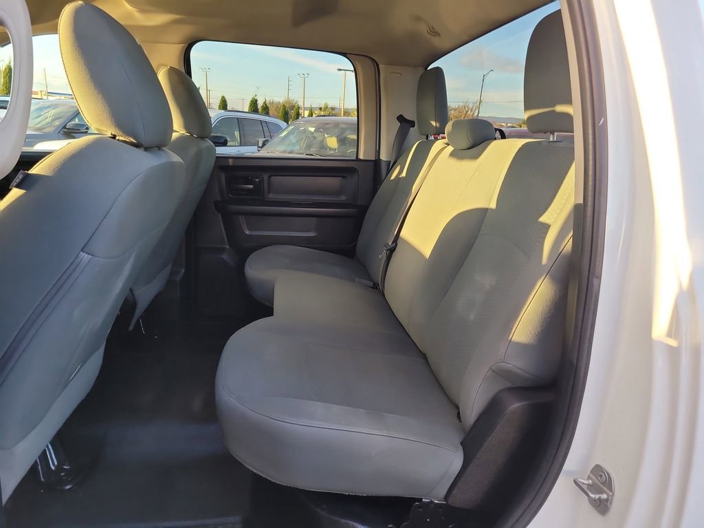 Popular Equipment Group (Cloth 40/20/40 Bench Seat, Remote Keyless Entry w/All-Secure, SiriusXM Satellite Radio, 1-Yr SiriusXM Radio Service, 40/20/40 Split Bench Seat, For More Info, Call 800-643-2112, Front Armrest w/3 Cupholders, Manual Adjust Seats, No Satellite Coverage w/AK/HI, Rear Folding Seat, and Storage Tray), Quick Order Package 22B Tradesman, Quick Order Package 27B Tradesman, Tradesman Package, 1500 Classic Tradesman, 4D Crew Cab, HEMI 5.7L V8 Multi Displacement VVT, 8-Speed Automatic, RWD, Bright White Clearcoat, Black Cloth, 17" x 7" Steel Wheels, 2nd Row In Floor Storage Bins, 4-Wheel Disc Brakes, 6 Speakers, ABS brakes, Active Grille Shutters, Air Conditioning, AM/FM radio, Anti-Spin Differential Rear Axle, Auto-dimming Rear-View mirror, Black Exterior Mirrors, Brake assist, Center Hub, Delay-off headlights, Delete Under Rail Box Bedliner (DISC), Driver door bin, Dual front impact airbags, Dual front side impact airbags, Electronic Shift, Electronic Stability Control, Exterior Mirrors w/Heating Element, Front anti-roll bar, Front Center Armrest, Front wheel independent suspension, Fully automatic headlights, Heated door mirrors, Heavy Duty Vinyl 40/20/40 Split Bench Seat, LED Bed Lighting, Low tire pressure warning, Manufacturer's Statement of Origin, Media Hub (USB, AUX), Occupant sensing airbag, Overhead airbag, ParkView Rear Back-Up Camera, Passenger door bin, Power door mirrors, Power steering, Power windows, Radio data system, Radio: 3.0, Rear anti-roll bar, Rear seat center armrest, Rear step bumper, Remote USB Port - Charge Only, Speed control, Spray In Bedliner, Tachometer, Tilt steering wheel, Tip Start, Traction control, Trailer Brake Control, Variably intermittent wipers, and Voltmeter.