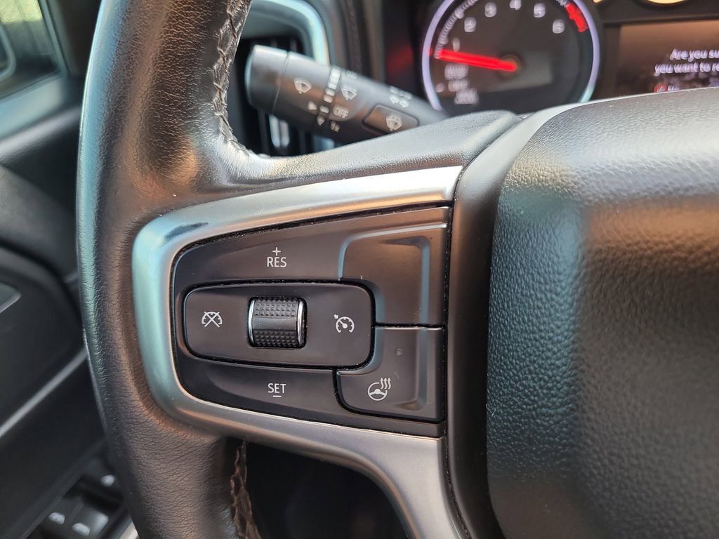 Bed Protection Package (Chevytec Spray-On Black Bedliner and Rear Wheelhouse Liners), Cloth Rear Seat w/Storage Package, Convenience Package w/Buckets Seats (10-Way Power Driver Seat w/Lumbar, Dual-Zone Automatic Climate Control, Floor Mounted Center Console, Heated Driver & Front Outboard Passenger Seats, Heated Steering Wheel, and Manual Tilt/Telescoping Steering Column), Preferred Equipment Group 2LT (12-Volt Rear Auxiliary Power Outlet, 170 Amp Alternator, 2 USB Ports (First Row), 4.2" Diagonal Color Display Driver Info Center, 6-Speaker Audio System, All-Weather Floor Liner (LPO) (AAK), Auto-Locking Rear Differential, Auxiliary External Transmission Oil Cooler, Bluetooth® For Phone, Color-Keyed Carpeting Floor Covering, Compass, Deep-Tinted Glass, Dual Exhaust w/Polished Outlets, Electric Rear-Window Defogger, Electrical Lock Control Steering Column, Electronic Cruise Control, EZ Lift Power Lock & Release Tailgate, Front LED Fog Lamps, High Gloss Black Grille, High Gloss Black Mirror Caps, Keyless Open & Start, Leather Wrapped Steering Wheel, LED Cargo Area Lighting, LED Reflector Headlamps, OnStar & Chevrolet Connected Services Capable, Performance Red Recovery Hooks, Power Door Locks, Power Front Windows w/Driver Express Up/Down, Power Front Windows w/Passenger Express Down, Power Rear Windows w/Express Down, Rear Dual USB Charging-Only Ports, Rear Vision Camera, Remote Vehicle Starter System, SiriusXM Radio, Standard Tailgate, Steering Wheel Audio Controls, Theft Deterrent System (Unauthorized Entry), 4G LTE Wi-Fi Hot Spot Capable, and Chevrolet Connected Access Capable), Suspension Package (Heavy-Duty Air Filter and Hill Descent Control), Trailering Package (Hitch Guidance), Silverado 1500 LT Trail Boss, 4D Crew Cab, EcoTec3 5.3L V8, 10-Speed Automatic, 4WD, Blue Metallic, Jet Black Cloth, 3.23 Rear Axle Ratio, 4-Wheel Disc Brakes, 4" Black Round Assist Steps (LPO), 6 Speakers, ABS brakes, Air Conditioning, Alloy wheels, AM/FM radio: SiriusXM, Apple CarPlay/Android Auto, Automatic temperature control, Brake assist, Cloth Seat Trim, Delay-off headlights, Driver door bin, Driver vanity mirror, Dual front impact airbags, Dual front side impact airbags, Electronic Stability Control, Front anti-roll bar, Front Bucket Seats, Front Center Armrest w/Storage, Front dual zone A/C, Front fog lights, Front reading lights, Front wheel independent suspension, Fully automatic headlights, Heated door mirrors, Heated front seats, Heated steering wheel, Illuminated entry, Low tire pressure warning, Occupant sensing airbag, Off-Road Suspension w/2" Lift, Outside temperature display, Overhead airbag, Overhead console, Panic alarm, Passenger door bin, Passenger vanity mirror, Power door mirrors, Power driver seat, Power steering, Power windows, Premium audio system: Chevrolet Infotainment 3, Radio data system, Radio: Chevrolet Infotainment 3 System, Rear reading lights, Rear seat center armrest, Rear step bumper, Rear window defroster, Remote keyless entry, Security system, Speed control, Speed-sensing steering, Split folding rear seat, Steering wheel mounted audio controls, Tachometer, Telescoping steering wheel, Tilt steering wheel, Traction control, Trip computer, Variably intermittent wipers, Voltmeter, and Wheels: 18" x 8.5" Black Painted Aluminum.