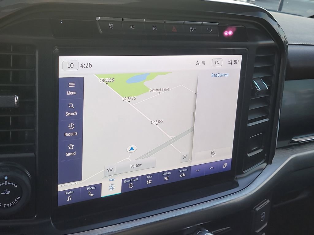 Bed Utility Package (BoxLink, LED Box Lighting, Power Tailgate, and Tailgate Step w/Tailgate Work Surface), Equipment Group 502A High (2nd Row Heated Seats, Heated Steering Wheel, Leather-Trimmed Bucket Seats, LED Projector w/Dynamic Bending Headlamps, Onboard 400W Outlet, Power Glass Sideview Mirr w/Chrome Skull Caps, Power Tilt/Telescoping Steering Column w/Memory, Radio: B&O Sound System by Bang & Olufsen, Rain-Sensing Wipers, Universal Garage Door Opener, and Wireless Charging Pad), Ford Co-Pilot360 Active 2.0 (Active Park Assist 2.0 and BlueCruise), FX4 Off-Road Package (4x4 FX4 Off-Road Bodyside Decal, Hill Descent Control, Monotube Rear Shocks, Off-Road Tuned Front Shock Absorbers, Rock Crawl Mode, and Tray Style Floor Liner (47W)), Lariat Chrome Appearance Package (Chrome Single-Tip Exhaust, 6" Bright Polished Running Board, Chrome 2-Bar Grille w/4 Minor Bars, Chrome Door & Tailgate Handles w/Body-Color Bezel, Chrome Skull Caps on Exterior Mirrors, and Wheels: 18" Chrome-Like PVD), Lariat Sport Appearance Package (Accent-Color Angular Step Bars, Body-Color Front & Rear Bumpers, Box Side Decals, Dark 2-Bar & 1 Minor Bar Style Grille, and Wheels: 18" 6-Spoke Machined Aluminum), Tow Technology Package (360 Degree Camera, Integrated Trailer Brake Controller, and Pro Trailer Backup Assist), F-150 Lariat, 4D SuperCrew, 3.5L PowerBoost Full-Hybrid V6, 10-Speed Automatic, 4WD, Carbonized Gray Metallic, Black Leather, 18" Machined-Aluminum Wheels, 4-Wheel Disc Brakes, 7 Speakers, ABS brakes, Active Park Assist 2.0 Removal, Adjustable pedals, Air Conditioning, Alloy wheels, AM/FM radio: SiriusXM with 360L, Auto High-beam Headlights, Auto Start-Stop Removal, Auto-dimming door mirrors, Auto-dimming Rear-View mirror, Automatic temperature control, Brake assist, Bumpers: chrome, Class IV Trailer Hitch Receiver, Compass, Connected Built-In Navigation, Delay-off headlights, Driver door bin, Driver vanity mirror, Dual front impact airbags, Dual front side impact airbags, Electronic Stability Control, Emergency communication system: SYNC 4 911 Assist, Exterior Parking Camera Rear, Front anti-roll bar, Front Center Armrest w/Storage, Front dual zone A/C, Front fog lights, Front reading lights, Front wheel independent suspension, Fully automatic headlights, Heated door mirrors, Heated front seats, Illuminated entry, Interior Work Surface, Leather-Trimmed 40/20/40 Front Seat, LED Sideview Mirror Spotlights, Low tire pressure warning, Memory seat, Occupant sensing airbag, Outside temperature display, Overhead airbag, Overhead console, Panic alarm, Passenger door bin, Passenger vanity mirror, Pedal memory, Power door mirrors, Power driver seat, Power passenger seat, Power steering, Power windows, Pro Power Onboard - 7.2KW, Radio data system, Radio: AM/FM SiriusXM w/360L, Radio: B&O Unleashed Sound System by Bang & Olufsen, Rear reading lights, Rear seat center armrest, Rear step bumper, Rear window defroster, Remote keyless entry, Security system, Speed control, Speed-sensing steering, Split folding rear seat, Steering wheel mounted audio controls, SYNC 4 w/Enhanced Voice Recognition, Tachometer, Telescoping steering wheel, Tilt steering wheel, Traction control, Trip computer, Turn signal indicator mirrors, Twin Panel Moonroof, Variably intermittent wipers, Ventilated front seats, Voltmeter, and Wheels: 20" 6-Spoke Dark Alloy Painted Aluminum.