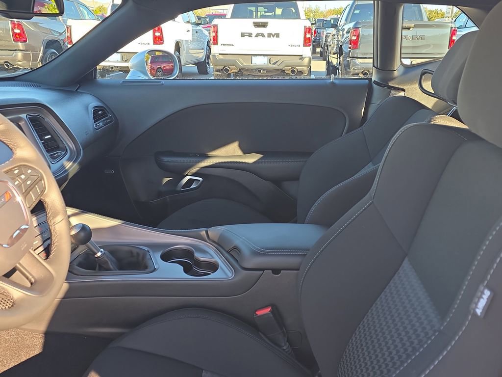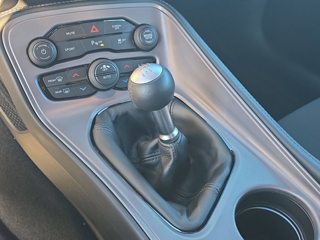 Blacktop Package (Black Fuel Filler Door, Black Grille w/Bezel, Blacktop R/T Badge, Challenger Blacktop Grille Badge, Gloss Black I/P Cluster Trim Rings, Rhombi 2-Pc Wheel Center Cap, Satin Black Dodge Tail Lamp Badge, and Wheels: 20" x 8.0" Black Noise Painted), Quick Order Package 22H, Challenger R/T, Dodge Combined Certified, 2D Coupe, HEMI 5.7L V8 VVT, Tremec 6-Speed Manual, RWD, Triple Nickel Clearcoat, Black Cloth, 276 Watt Amplifier, 4-Wheel Disc Brakes, 6 Speakers, ABS brakes, Air Conditioning, Alloy wheels, AM/FM radio, Anti-whiplash front head restraints, Apple CarPlay, Apple CarPlay/Android Auto, Auto-dimming Rear-View mirror, Automatic temperature control, Body Color Exterior Mirrors, Brake assist, Bumpers: body-color, Delay-off headlights, Driver door bin, Driver vanity mirror, Dual front impact airbags, Dual front side impact airbags, Electronic Stability Control, Exterior Mirrors w/Heating Element, Four wheel independent suspension, Front anti-roll bar, Front Bucket Seats, Front Center Armrest, Front dual zone A/C, Front License Plate Bracket, Front reading lights, Fully automatic headlights, Garage door transmitter, Google Android Auto, GPS Antenna Input, Heated door mirrors, Houndstooth Cloth Performance Seats, Illuminated entry, Integrated Center Stack Radio, Integrated Voice Command w/Bluetooth, Leather Shift Knob, Low tire pressure warning, Media Hub (2 USB, AUX), Outside temperature display, Overhead airbag, Overhead console, Panic alarm, ParkView Rear Back-Up Camera, Passenger door bin, Passenger vanity mirror, Power door mirrors, Power driver seat, Power steering, Power windows, Radio data system, Radio: Uconnect 4 w/7" Display, Rear anti-roll bar, Rear reading lights, Rear seat center armrest, Rear window defroster, Remote keyless entry, Security system, Speed control, Speed-sensing steering, Split folding rear seat, Spoiler, Sport steering wheel, Steering wheel mounted audio controls, Tachometer, Telescoping steering wheel, Tilt steering wheel, Traction control, Trip computer, USB Host Flip, Variably intermittent wipers, and Wheels: 20" x 8.0" Machined w/Granite Pocket.