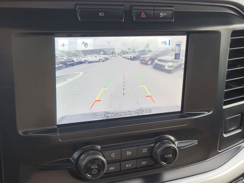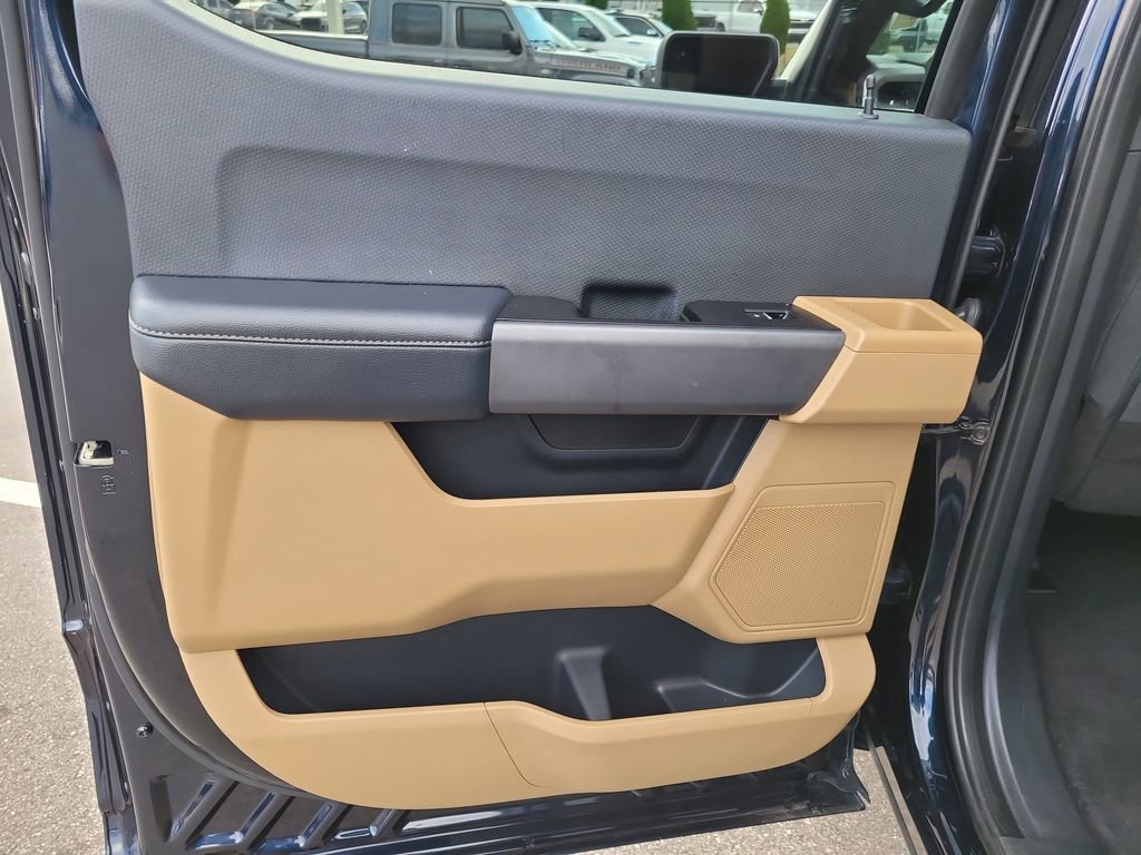 F-150 XLT, 4D SuperCrew, 5.0L V8, 10-Speed Automatic, 4WD, Blue Metallic, Tan Cloth, 18" Silver Painted Aluminum Wheels, 3.31 Axle Ratio, 4-Wheel Disc Brakes, 6 Speakers, 8-Way Power Driver's Seat w/Power Lumbar, ABS brakes, Air Conditioning, Alloy wheels, AM/FM radio, Auto High-beam Headlights, Brake assist, Bumpers: chrome, Cloth 40/20/40 Front Seat, Compass, Delay-off headlights, Driver door bin, Driver vanity mirror, Dual front impact airbags, Dual front side impact airbags, Electronic Stability Control, Emergency communication system: SYNC 4 911 Assist, Exterior Parking Camera Rear, Front anti-roll bar, Front Center Armrest w/Storage, Front fog lights, Front reading lights, Front wheel independent suspension, Fully automatic headlights, Heated door mirrors, Illuminated entry, Low tire pressure warning, Occupant sensing airbag, Outside temperature display, Overhead airbag, Overhead console, Panic alarm, Passenger door bin, Passenger vanity mirror, Power door mirrors, Power steering, Power windows, Radio data system, Radio: AM/FM Stereo w/6 Speakers, Rear reading lights, Rear step bumper, Rear window defroster, Remote keyless entry, Security system, Speed control, Speed-sensing steering, Split folding rear seat, Steering wheel mounted audio controls, SYNC 4, Tachometer, Telescoping steering wheel, Tilt steering wheel, Traction control, Trip computer, Variably intermittent wipers, Voltmeter, and Wheels: 17" Silver Painted Aluminum.