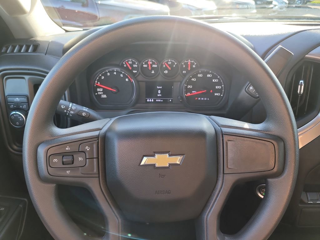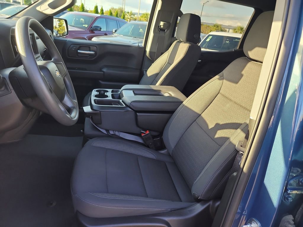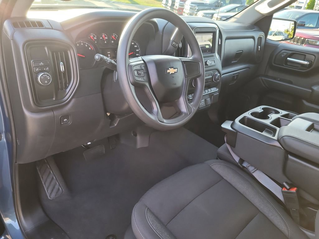 Custom Convenience Package (Electric Rear-Window Defogger, EZ Lift Power Lock & Release Tailgate, LED Cargo Area Lighting, Remote Vehicle Starter System, and Theft Deterrent System (Unauthorized Entry)), Custom Value Package, High Capacity Suspension Package, Preferred Equipment Group 1CX (10-Way Power Driver Seat w/Lumbar, 120-Volt Interior Power Outlet, 3.5" Monochromatic Display Driver Info Center, Bluetooth® For Phone, Color-Keyed Carpeting Floor Covering, Deep-Tinted Glass, Dual Rear USB Ports (Charge Only), Electrical Steering Column Lock, Electronic Cruise Control, Front Frame-Mounted Black Recovery Hooks, Front Rubberized Vinyl Floor Mats, HD Rear Vision Camera, Manual Tilt Wheel Steering Column, OnStar & Chevrolet Connected Services Capable, Power Front Windows w/Driver Express Up/Down, Power Front Windows w/Passenger Express Down, Power Rear Windows w/Express Down, Rear 60/40 Folding Bench Seat (Folds Up), Rear Rubberized-Vinyl Floor Mats, Remote Keyless Entry, SiriusXM Radio, Standard Tailgate, 120-Volt Bed Mounted Power Outlet, Chevrolet Connected Access Capable, and Wi-Fi Hot Spot Capable), Trailering Package (Hitch Guidance), Silverado 1500 Custom, 4D Crew Cab, 2.7L I4 Turbocharged DOHC 16V LEV3-SULEV30 310hp, 8-Speed Automatic, RWD, Lakeshore Blue Metallic, Black Cloth, 3.42 Rear Axle Ratio, 4-Wheel Disc Brakes, 40/20/40 Front Split-Bench Seat, 6 Speakers, 6-Speaker Audio System, 6" Rectangular Black Tubular Assist Steps (LPO), ABS brakes, Air Conditioning, Alloy wheels, AM/FM radio: SiriusXM, Auto High-beam Headlights, Auto-Locking Rear Differential, Automatic Emergency Braking, Brake assist, Bumpers: body-color, Cloth Seat Trim, Compass, Delay-off headlights, Driver door bin, Driver vanity mirror, Dual front impact airbags, Dual front side impact airbags, Electronic Stability Control, Following Distance Indicator, Forward Collision Alert, Front anti-roll bar, Front Center Armrest w/Storage, Front Pedestrian Braking, Front reading lights, Front wheel independent suspension, Fully automatic headlights, Heated door mirrors, Illuminated entry, IntelliBeam Automatic High Beam On/Off, Lane Keep Assist w/Lane Departure Warning, Low tire pressure warning, Multi-Flex Tailgate, Occupant sensing airbag, Outside temperature display, Overhead airbag, Overhead console, Panic alarm, Passenger door bin, Passenger vanity mirror, Power door mirrors, Power driver seat, Power steering, Power windows, Premium audio system: Chevrolet Infotainment 3, Radio data system, Radio: Chevrolet Infotainment 3 System, Rear reading lights, Rear step bumper, Rear window defroster, Remote keyless entry, Security system, Single Outlet Exhaust, Speed control, Speed-sensing steering, Split folding rear seat, Tachometer, Tilt steering wheel, Traction control, Trip computer, Variably intermittent wipers, Voltmeter, and Wheels: 20" x 9" Bright Silver Painted Aluminum.