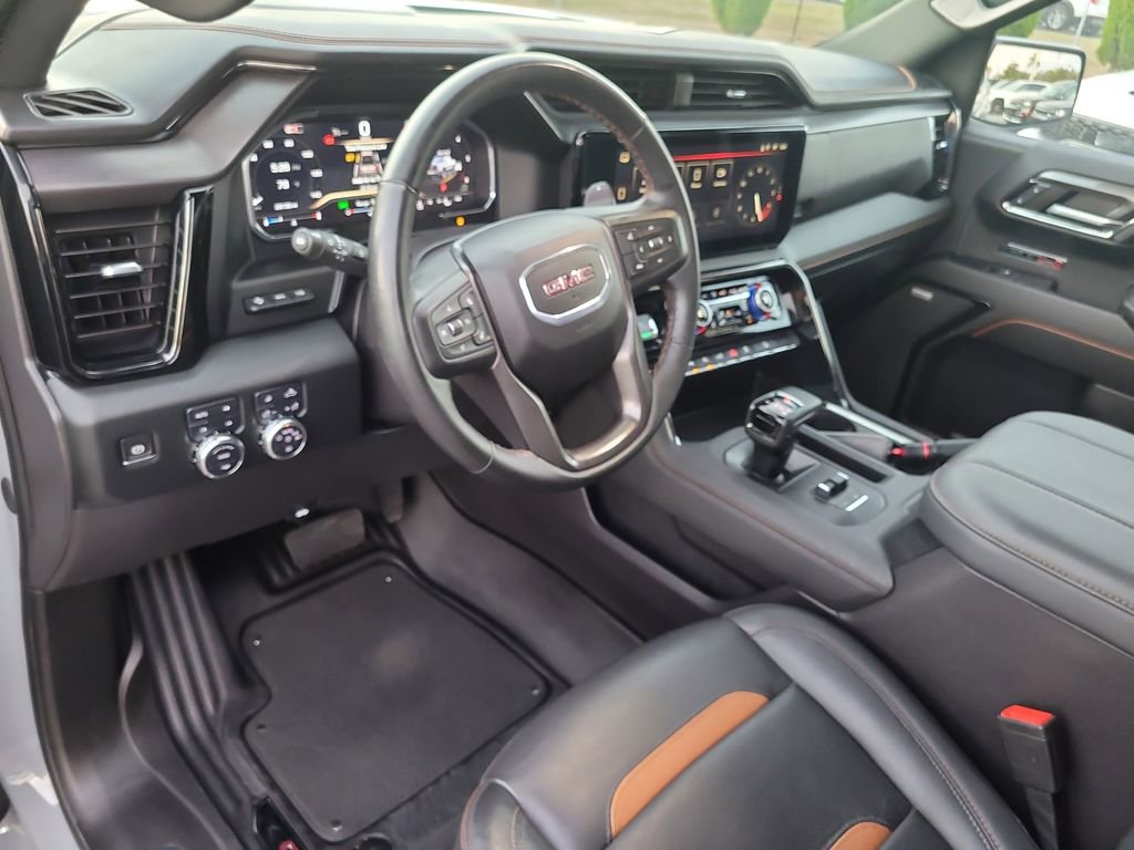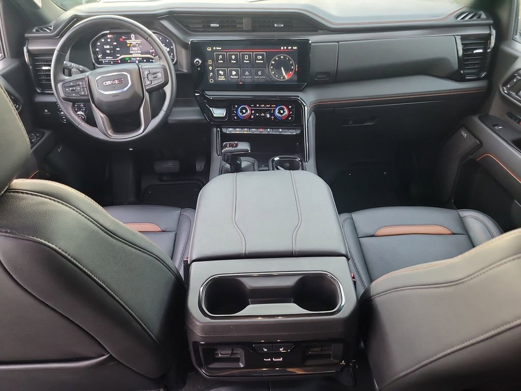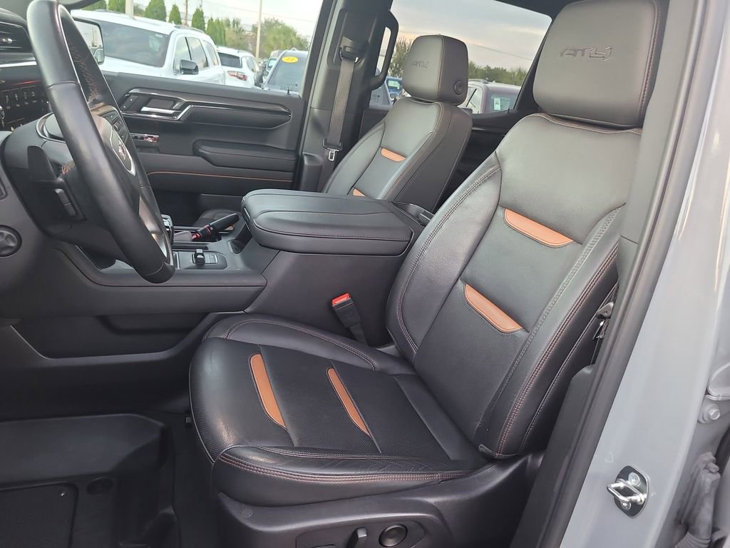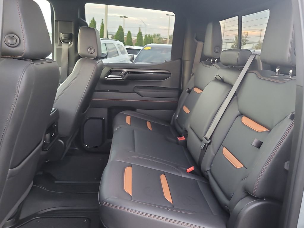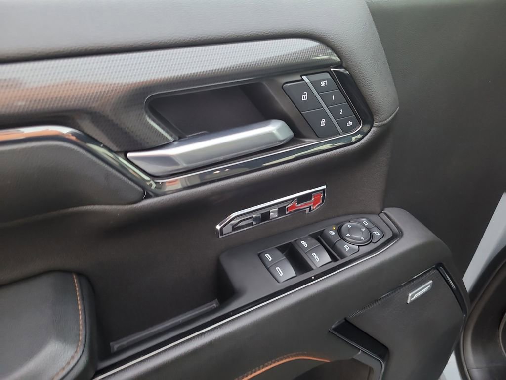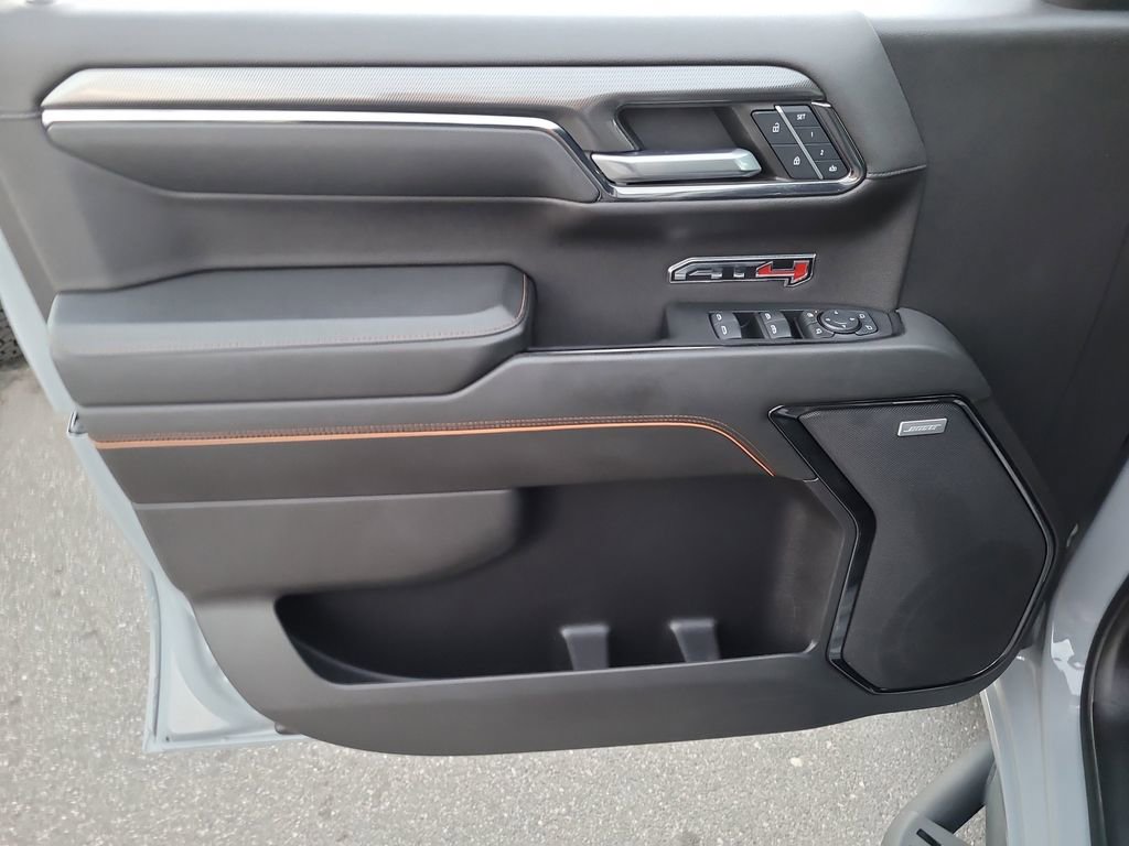 Trailering Package (Hitch Guidance), Sierra 1500 AT4, 4D Crew Cab, EcoTec3 6.2L V8, 10-Speed Automatic, 4WD, Blue, Jet Black Leather, Navigation System, 10-Way Power Driver Seat Adjuster w/Lumbar, 10-Way Power Passenger Seat Adjuster w/Lumbar, 120-Volt Bed Mounted Power Outlet, 120-Volt Interior Power Outlet, 18" x 8.5" Machined Aluminum Wheels, 2 Charge/Data USB Ports Inside Center Console, 2 Type-C Charge-Only Rear USB Ports, 2 USB Ports, 220 Amp Alternator, 3.23 Rear Axle Ratio, 4-Wheel Disc Brakes, 7 Speakers, ABS brakes, Air Conditioning, Alloy wheels, AM/FM radio: SiriusXM with 360L, Apple CarPlay/Android Auto, Auto High-beam Headlights, Auto-dimming door mirrors, Auto-dimming Rear-View mirror, Auto-Locking Rear Differential, Automatic Emergency Braking, Automatic temperature control, Black Chrome Header & Grille Insert Bars, Block heater, Brake assist, Buckle to Drive, Bumpers: body-color, Color-Keyed Carpeting Floor Covering, Compass, Deep-Tinted Glass, Delay-off headlights, Driver door bin, Driver Memory, Driver vanity mirror, Dual front impact airbags, Dual front side impact airbags, Electric Rear-Window Defogger, Electronic Stability Control, Floor-Mounted Center Console, Following Distance Indicator, Forward Collision Alert, Front anti-roll bar, Front Bucket Seats, Front Center Armrest, Front dual zone A/C, Front fog lights, Front Pedestrian Braking, Front Prem Floor Liners w/Removable Carpet Insert, Front Rain-Sensing Wipers, Front reading lights, Front wheel independent suspension, Fully automatic headlights, GMC Connected Access Capable, HD Surround Vision, Heated 2nd Row Outboard Seats, Heated door mirrors, Heated Driver & Front Outboard Passenger Seating, Heated front seats, Heated rear seats, Heated steering wheel, Heavy-Duty Air Filter, Hill Descent Control, Hitch View, Illuminated entry, In-Vehicle Trailering System App, Integrated Trailer Brake Controller, IntelliBeam Automatic High Beam On/Off, Keyless Open & Start, Lane Keep Assist w/Lane Departure Warning, LED Cargo Area Lighting, Low tire pressure warning, Memory seat, Occupant sensing airbag, Off-Road Suspension, OnStar & GMC Connected Services Capable, Outside temperature display, Overhead airbag, Overhead console, Panic alarm, Passenger door bin, Passenger vanity mirror, Perforated Front Leather Seat Trim, Perimeter Lighting, Power Door Locks, Power door mirrors, Power driver seat, Power Front Passenger Windows w/Express Up/Down, Power Front Windows w/Driver Express Up/Down, Power passenger seat, Power Rake & Telescoping Steering Column, Power Rear Windows w/Express Down, Power steering, Power windows, Premium audio system: GMC Infotainment System, Premium Bose 7-Speaker Sound System, Push Button Start, Radio data system, Radio: Premium GMC Infotainment Audio System, Rain sensing wipers, Rear Cross Traffic Braking, Rear Pedestrian Detection, Rear Prem Floor Liners w/Removable Carpet Insert, Rear reading lights, Rear seat center armrest, Rear step bumper, Rear Wheelhouse Liners, Rear window defroster, Red Recovery Hooks, Remote keyless entry, Remote Vehicle Starter System, Safety Alert Seat, Security system, SiriusXM w/360L, Speed control, Speed-sensing steering, Split folding rear seat, Spray-On Pickup Bedliner w/AT4 Logo, Steering Wheel Audio Controls, Steering wheel mounted audio controls, Tachometer, Telescoping steering wheel, Theft Deterrent System (Unauthorized Entry), Tilt steering wheel, Traction control, Trailer Camera Provisions, Trailer Side Blind Zone Alert, Trip computer, Ultrasonic Front & Rear Park Assist, Variably intermittent wipers, Ventilated Driver & Front Passenger Seats, Ventilated front seats, Voltmeter, Wi-Fi Hotspot Capable, Wireless Apple CarPlay/Wireless Android Auto, and Wireless Charging.