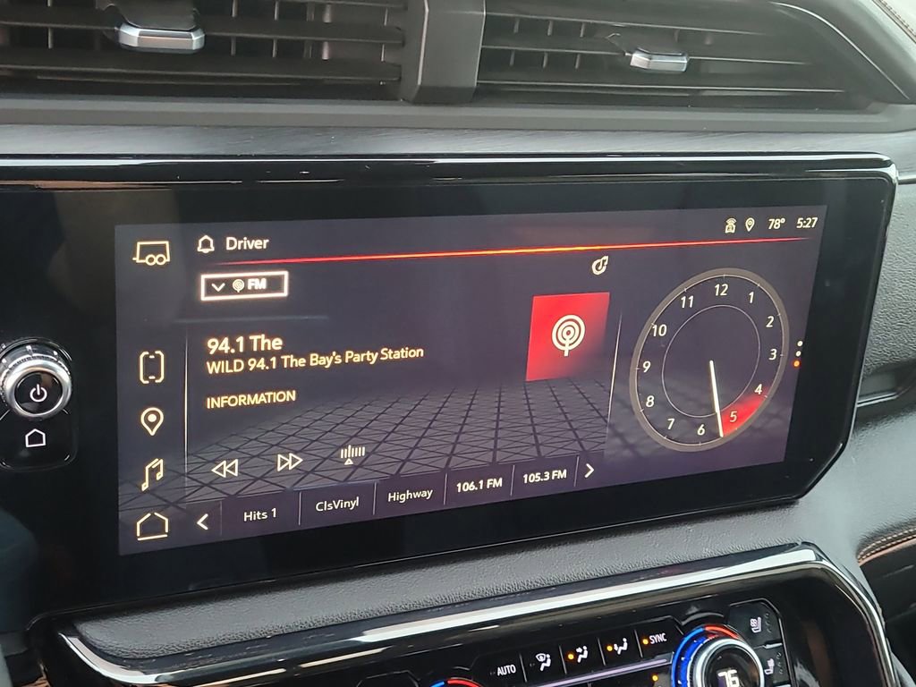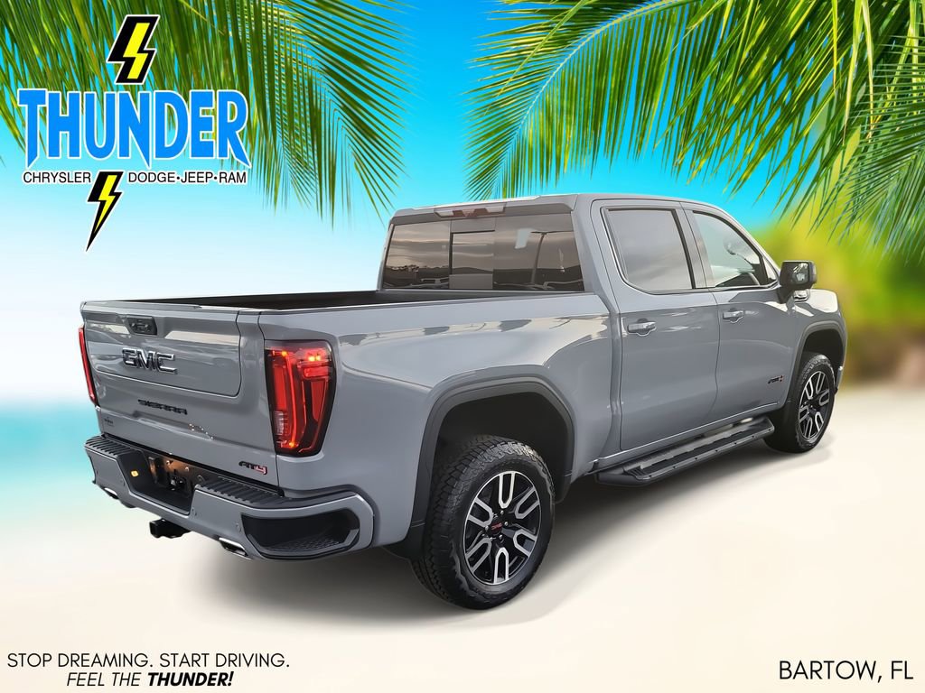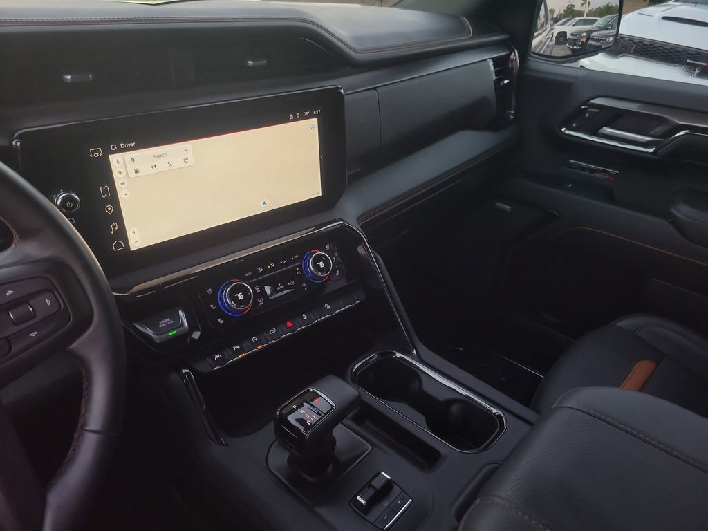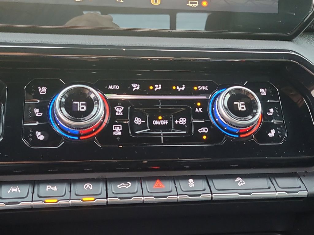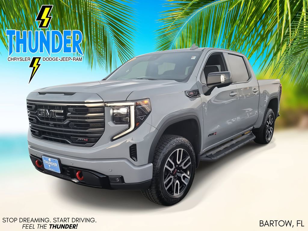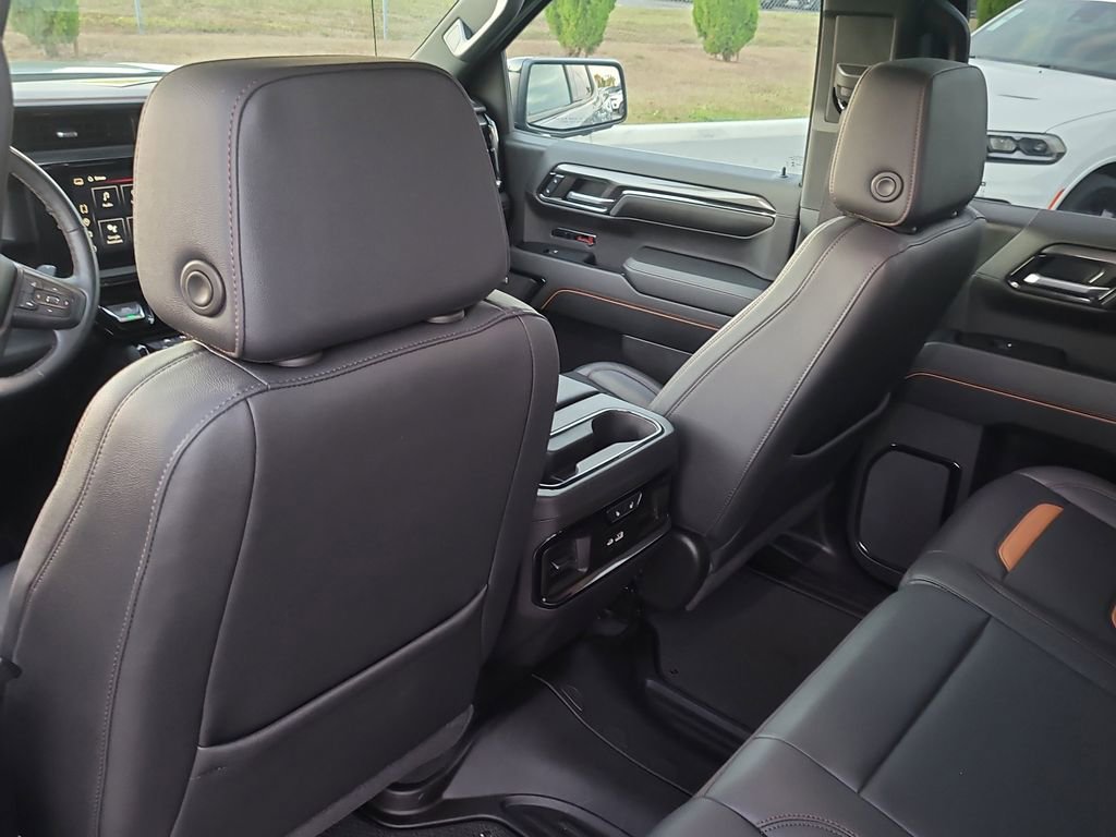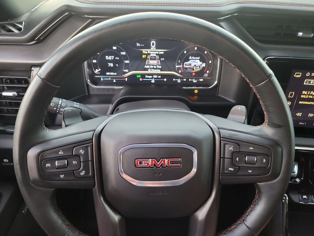Trailering Package (Hitch Guidance), Sierra 1500 AT4, 4D Crew Cab, EcoTec3 6.2L V8, 10-Speed Automatic, 4WD, Blue, Jet Black Leather, Navigation System, 10-Way Power Driver Seat Adjuster w/Lumbar, 10-Way Power Passenger Seat Adjuster w/Lumbar, 120-Volt Bed Mounted Power Outlet, 120-Volt Interior Power Outlet, 18" x 8.5" Machined Aluminum Wheels, 2 Charge/Data USB Ports Inside Center Console, 2 Type-C Charge-Only Rear USB Ports, 2 USB Ports, 220 Amp Alternator, 3.23 Rear Axle Ratio, 4-Wheel Disc Brakes, 7 Speakers, ABS brakes, Air Conditioning, Alloy wheels, AM/FM radio: SiriusXM with 360L, Apple CarPlay/Android Auto, Auto High-beam Headlights, Auto-dimming door mirrors, Auto-dimming Rear-View mirror, Auto-Locking Rear Differential, Automatic Emergency Braking, Automatic temperature control, Black Chrome Header & Grille Insert Bars, Block heater, Brake assist, Buckle to Drive, Bumpers: body-color, Color-Keyed Carpeting Floor Covering, Compass, Deep-Tinted Glass, Delay-off headlights, Driver door bin, Driver Memory, Driver vanity mirror, Dual front impact airbags, Dual front side impact airbags, Electric Rear-Window Defogger, Electronic Stability Control, Floor-Mounted Center Console, Following Distance Indicator, Forward Collision Alert, Front anti-roll bar, Front Bucket Seats, Front Center Armrest, Front dual zone A/C, Front fog lights, Front Pedestrian Braking, Front Prem Floor Liners w/Removable Carpet Insert, Front Rain-Sensing Wipers, Front reading lights, Front wheel independent suspension, Fully automatic headlights, GMC Connected Access Capable, HD Surround Vision, Heated 2nd Row Outboard Seats, Heated door mirrors, Heated Driver & Front Outboard Passenger Seating, Heated front seats, Heated rear seats, Heated steering wheel, Heavy-Duty Air Filter, Hill Descent Control, Hitch View, Illuminated entry, In-Vehicle Trailering System App, Integrated Trailer Brake Controller, IntelliBeam Automatic High Beam On/Off, Keyless Open & Start, Lane Keep Assist w/Lane Departure Warning, LED Cargo Area Lighting, Low tire pressure warning, Memory seat, Occupant sensing airbag, Off-Road Suspension, OnStar & GMC Connected Services Capable, Outside temperature display, Overhead airbag, Overhead console, Panic alarm, Passenger door bin, Passenger vanity mirror, Perforated Front Leather Seat Trim, Perimeter Lighting, Power Door Locks, Power door mirrors, Power driver seat, Power Front Passenger Windows w/Express Up/Down, Power Front Windows w/Driver Express Up/Down, Power passenger seat, Power Rake & Telescoping Steering Column, Power Rear Windows w/Express Down, Power steering, Power windows, Premium audio system: GMC Infotainment System, Premium Bose 7-Speaker Sound System, Push Button Start, Radio data system, Radio: Premium GMC Infotainment Audio System, Rain sensing wipers, Rear Cross Traffic Braking, Rear Pedestrian Detection, Rear Prem Floor Liners w/Removable Carpet Insert, Rear reading lights, Rear seat center armrest, Rear step bumper, Rear Wheelhouse Liners, Rear window defroster, Red Recovery Hooks, Remote keyless entry, Remote Vehicle Starter System, Safety Alert Seat, Security system, SiriusXM w/360L, Speed control, Speed-sensing steering, Split folding rear seat, Spray-On Pickup Bedliner w/AT4 Logo, Steering Wheel Audio Controls, Steering wheel mounted audio controls, Tachometer, Telescoping steering wheel, Theft Deterrent System (Unauthorized Entry), Tilt steering wheel, Traction control, Trailer Camera Provisions, Trailer Side Blind Zone Alert, Trip computer, Ultrasonic Front & Rear Park Assist, Variably intermittent wipers, Ventilated Driver & Front Passenger Seats, Ventilated front seats, Voltmeter, Wi-Fi Hotspot Capable, Wireless Apple CarPlay/Wireless Android Auto, and Wireless Charging.