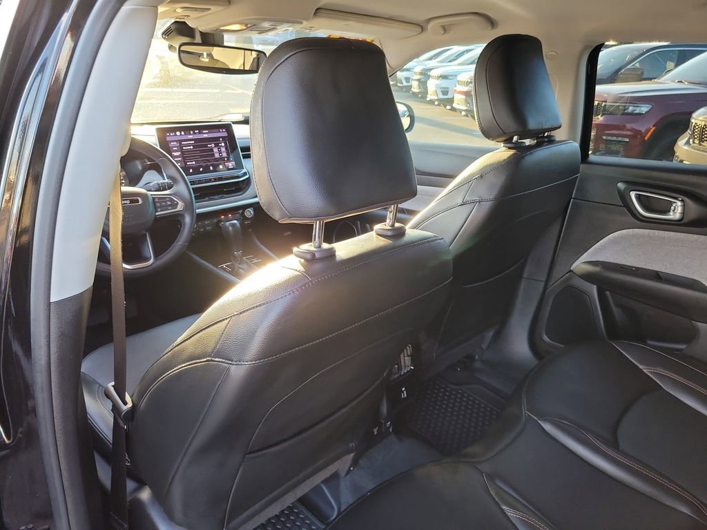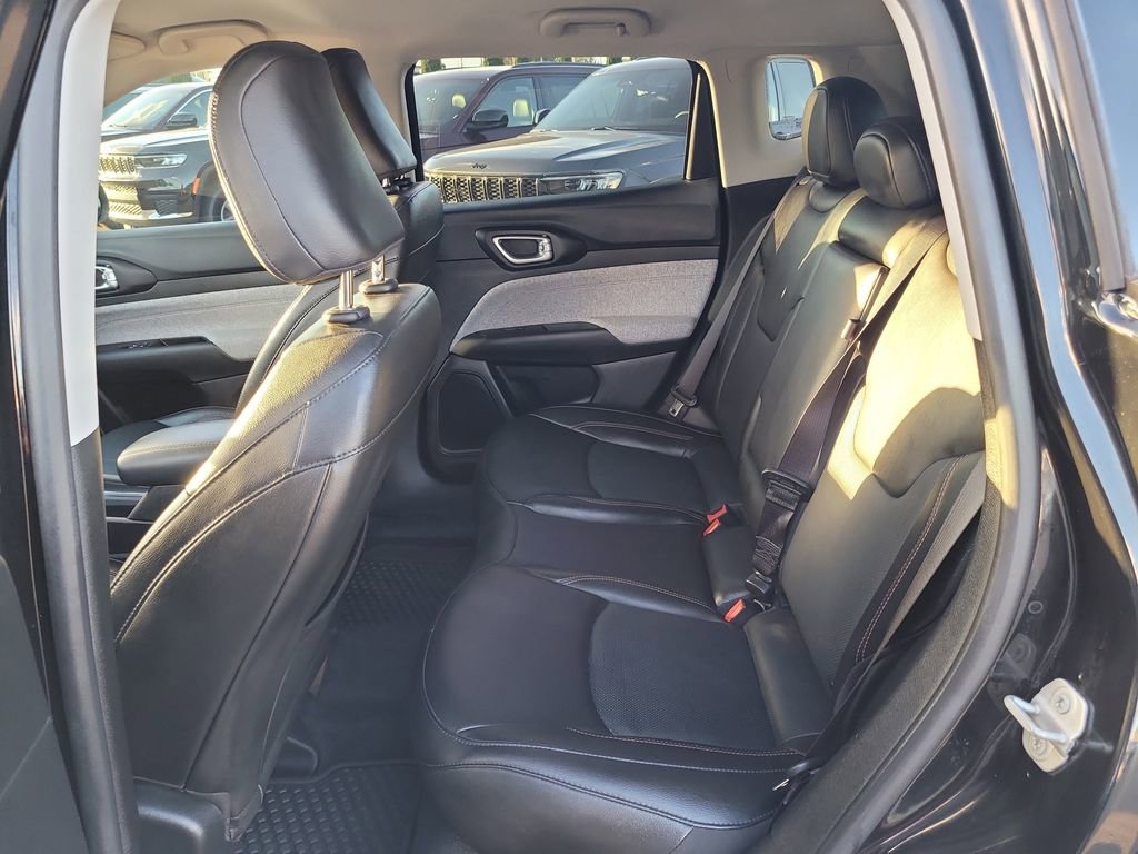 Lux Driver Assist (115V Auxiliary Power Outlet, 2nd Row USB Type A/C Charge Only, 360 Surround View Camera System, Adaptive Cruise Control w/Stop & Go, Air Conditioning ATC w/Dual Zone Control, All-Season Floor Mats, Foot Activated Open 'N Go Liftgate, Humidity Sensor, P&P Park & Unpark Assist System, ParkSense Fr/Rr Park Assist System, Power Liftgate, Premium LED Fog Lamps, Rain Sensitive/Intermittent Wipers, Reversible Carpet/Vinyl Cargo Mat, Universal Garage Door Opener, Windshield Wiper De-Icer, and Wireless Charging Pad), Quick Order Package 2GL, Compass Latitude Lux, FCA US LLC Certified Pre-Owned Certified, 4D Sport Utility, 2.4L I4, 9-Speed 948TE Automatic, 4WD, Diamond Black Crystal Pearlcoat, Black Leather, 3.73 Axle Ratio, 4-Wheel Disc Brakes, 6 Speakers, ABS brakes, Air Conditioning, Alloy wheels, AM/FM radio: SiriusXM, Anti-whiplash front head restraints, Auto High-beam Headlights, Auto-dimming Rear-View mirror, Brake assist, Bumpers: body-color, Compass, Delay-off headlights, Driver door bin, Driver vanity mirror, Dual front impact airbags, Dual front side impact airbags, Electronic Stability Control, Emergency communication system: SiriusXM Guardian, Four wheel independent suspension, Front anti-roll bar, Front Bucket Seats, Front Center Armrest w/Storage, Front fog lights, Front reading lights, Fully automatic headlights, Heated door mirrors, Heated front seats, Heated steering wheel, Illuminated entry, Knee airbag, Leather Shift Knob, Leather Trimmed Bucket Seats, Low tire pressure warning, Occupant sensing airbag, Outside temperature display, Overhead airbag, Overhead console, Panic alarm, ParkView Rear Back-Up Camera, Passenger door bin, Passenger vanity mirror, Power door mirrors, Power driver seat, Power steering, Power windows, Radio: Uconnect 5 w/10.1" Display, Rear anti-roll bar, Rear seat center armrest, Rear window defroster, Rear window wiper, Remote keyless entry, Roof rack: rails only, Security system, Speed control, Split folding rear seat, Spoiler, Steering wheel mounted audio controls, Tachometer, Telescoping steering wheel, Tilt steering wheel, Traction control, Trip computer, Variably intermittent wipers, and Wheels: 18" x 7.0" Painted Aluminum.