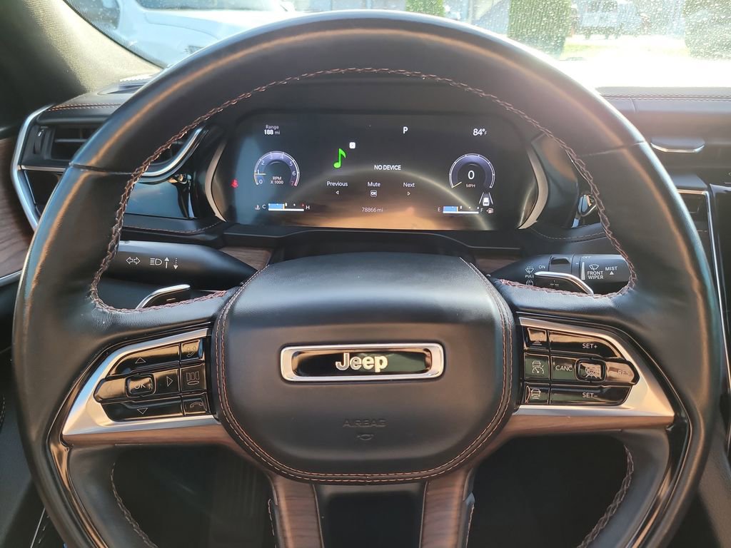 ADV Protech Group IV (Heads-Up Display, Night Vision w/Pedestrian-Animal Detection, and Rearview Autodim Digital Display Mirror), Luxury Tech Group V (2nd-Row Manual Window Shades and Wireless Charging Pad), Quick Order Package 22S, Grand Cherokee Summit, FCA US LLC Certified Pre-Owned Certified, 4D Sport Utility, 3.6L V6 24V VVT, 8-Speed Automatic, RWD, Baltic Gray Metallic Clearcoat, Global Black Leather, Navigation System, 10 Speakers, 19 Speakers High Performance Audio, 3.45 Rear Axle Ratio, 4-Wheel Disc Brakes, 950 Watt Amplifier, ABS brakes, Active Noise Control System, Air Conditioning, Alloy wheels, AM/FM radio: SiriusXM with 360L, Anti-whiplash front head restraints, Audio memory, Auto High-beam Headlights, Auto-dimming door mirrors, Auto-dimming Rear-View mirror, Automatic temperature control, Brake assist, Bumpers: body-color, Compass, Delay-off headlights, Driver door bin, Driver vanity mirror, Dual front impact airbags, Dual front side impact airbags, Electronic Stability Control, Emergency communication system, Four wheel independent suspension, Front anti-roll bar, Front Bucket Seats, Front Center Armrest w/Storage, Front dual zone A/C, Front fog lights, Front Passenger Interactive Display, Front reading lights, Fully automatic headlights, Garage door transmitter, Genuine wood dashboard insert, Genuine wood door panel insert, Heated door mirrors, Heated front seats, Heated rear seats, Heated steering wheel, Illuminated entry, Knee airbag, Leather steering wheel, Low tire pressure warning, Memory seat, Nappa Leather Seats, Normal Duty Suspension, Occupant sensing airbag, Outside temperature display, Overhead airbag, Overhead console, Panic alarm, Passenger door bin, Passenger vanity mirror, Power door mirrors, Power driver seat, Power Liftgate, Power moonroof, Power passenger seat, Power steering, Power windows, Radio data system, Radio: Uconnect 5 Nav w/10.1" Display, Rain sensing wipers, Rear air conditioning, Rear anti-roll bar, Rear dual zone A/C, Rear reading lights, Rear seat center armrest, Rear window defroster, Rear window wiper, Remote keyless entry, Roof rack: rails only, Security system, Speed control, Speed-Sensitive Wipers, Split folding rear seat, Spoiler, Steering wheel memory, Steering wheel mounted audio controls, Tachometer, Telescoping steering wheel, Tilt steering wheel, Traction control, Trip computer, Turn signal indicator mirrors, Variably intermittent wipers, Ventilated front seats, Voltmeter, and Wheels: 20" x 8.5" Fully Painted Aluminum Silver.