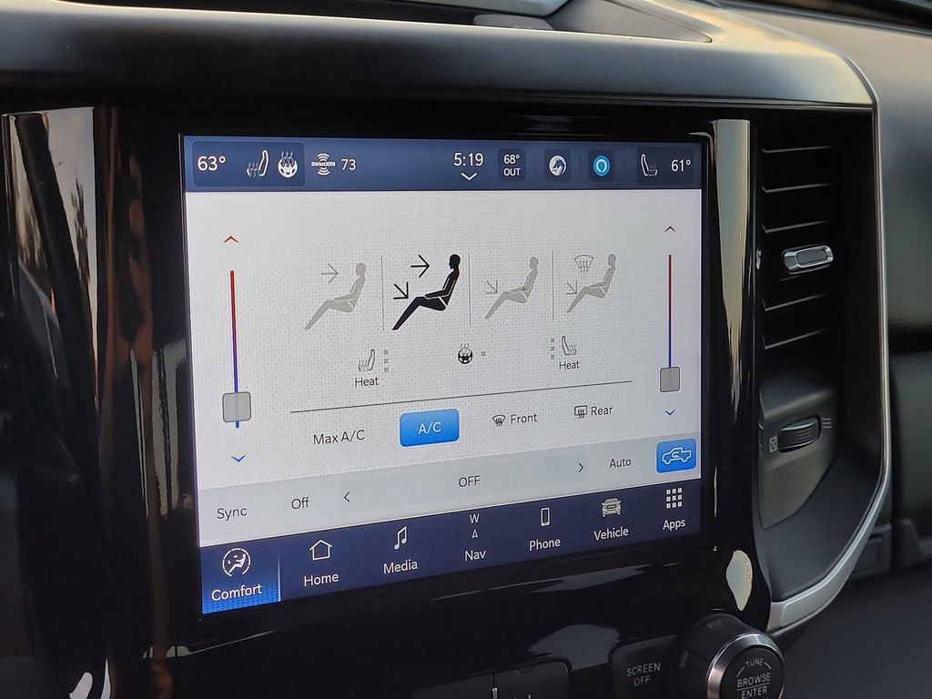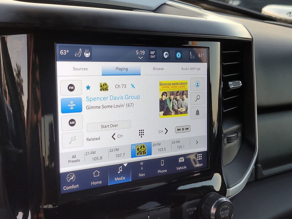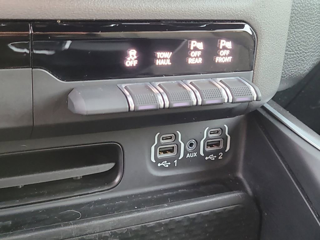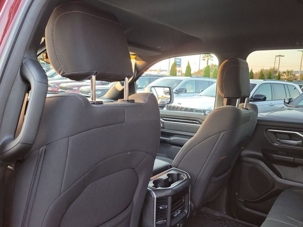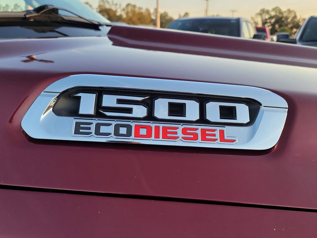 Big Horn Level 2 Equipment Group (115V Auxiliary Power Outlet, 115V Auxiliary Rear Power Outlet, 2nd Row In Floor Storage Bins, 4G LTE Wi-Fi Hot Spot, 8.4" Touchscreen Display, Air Conditioning ATC w/Dual Zone Control, Apple CarPlay, Auto-Dimming Exterior Driver Mirror, Auto-Dimming Rear-View Mirror, Black Exterior Mirrors, Black Premium Power Mirrors, Bluetooth Handsfree Phone & Audio, Class IV Receiver Hitch, Cluster 7.0" TFT Color Display, Connectivity - US/Canada, Convex Wide-Angle Mirror Insert, Exterior Mirrors Courtesy Lamps, Exterior Mirrors w/Heating Element, Exterior Mirrors w/Supplemental Signals, For Details, Visit DriveUconnect.com, Global Telematics Box Module (TBM), Glove Box Lamp, Google Android Auto, GPS Antenna Input, Heated Front Seats, Heated Steering Wheel, Integrated Center Stack Radio, Media Hub w/2 Charge Only USBs, ParkSense Front/Rear Park Assist w/Stop, Power 2-Way Driver Lumbar Adjust, Power 8-Way Driver Seat, Power Adjustable Pedals, Power-Folding Mirrors, Radio: Uconnect 5 W w/8.4" Display, Rear Dome w/On/Off Switch Lamp, Rear Power Sliding Window, Rear Window Defroster, Remote Start System, Security Alarm, SiriusXM Radio Service, SiriusXM Satellite Radio, Sun Visors w/Illuminated Vanity Mirrors, Universal Garage Door Opener, USB Host Flip, and 400W Inverter), Level 1 Safety Group (Advanced Brake Assist, Cluster 3.5" TFT Color Display, Full Speed Forward Collision Warning Plus, Lane Keep Assist, and Pedestrian Emergency Braking), Quick Order Package 28Z Big Horn (Big Horn Badge and Thermal Rear Axle), Sport Appearance Package (All Plant-Installed Decals, Black Interior Accents, Body Color Exterior Mirrors, Body Color Front Bumper, Body Color Premium Power Mirrors, Body Color Rear Bumper w/Step Pads, Bridgestone Brand Tires, Deluxe Cloth Bucket Seats, Sport Decal, 3 Rear Seat Head Restraints, 4 Way Front Headrests, Bucket Seats, Delete LED Lamp - Floor Console Bin, Front Seat Back Map Pockets, Full Length Floor Console, Manual Adjust 4-Way Front Passenger Seat, Rear 60/40 Folding Seat, and Rear Center Armrest), 1500 Big Horn/Lone Star, FCA US LLC Certified Pre-Owned Certified, 4D Crew Cab, EcoDiesel 3.0L V6, 8-Speed Automatic, RWD, Delmonico Red Pearlcoat, Black Cloth, GPS Navigation, 3.21 Rear Axle Ratio, 4-Wheel Disc Brakes, 48V Belt Starter Generator, 6 Speakers, ABS brakes, Air Conditioning, All R1 High Radios, All Radio Equipped Vehicles, Alloy wheels, AM/FM radio, Anti-Spin Differential Rear Axle, Brake assist, Bumpers: chrome, Cloth Bench Seat, Compass, Connected Travel & Traffic Services, Delay-off headlights, Disassociated Touchscreen Display, Driver door bin, Dual front impact airbags, Dual front side impact airbags, Electronic Stability Control, Emergency communication system: SiriusXM Guardian, Exterior Parking Camera Rear, Front anti-roll bar, Front Center Armrest w/Storage, Front fog lights, Front reading lights, Front wheel independent suspension, Fully automatic headlights, HD Radio, Heated door mirrors, Illuminated entry, Integrated Voice Command w/Bluetooth, Leather steering wheel, Low tire pre