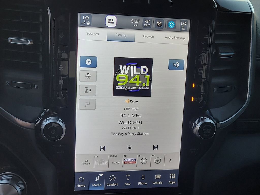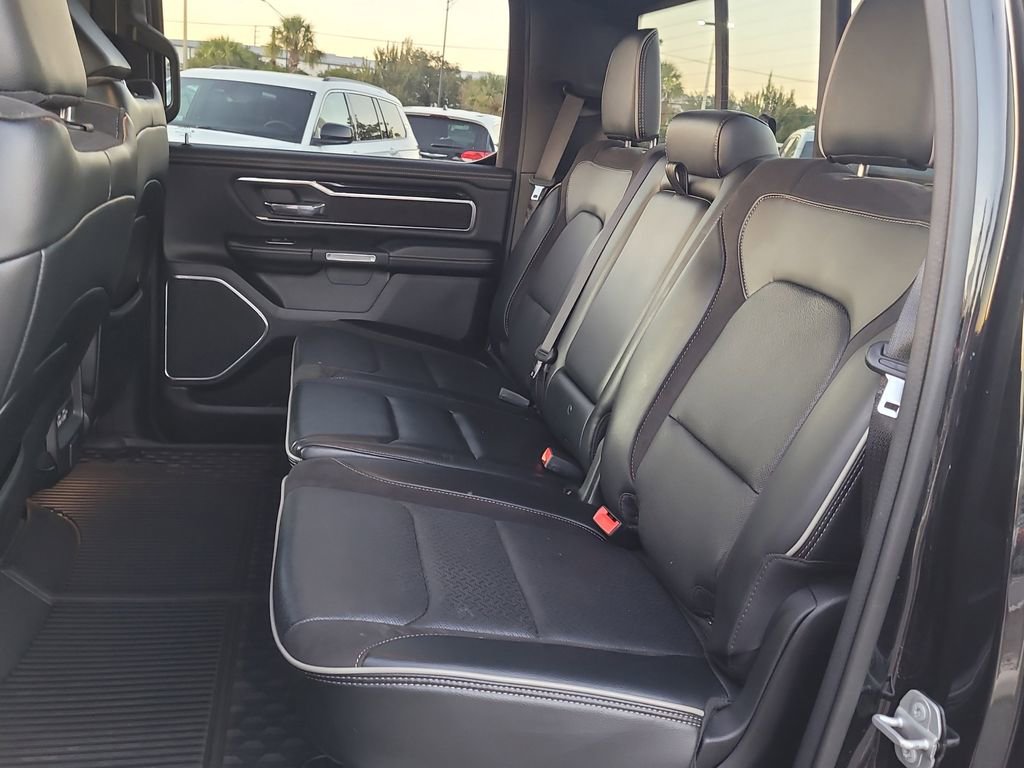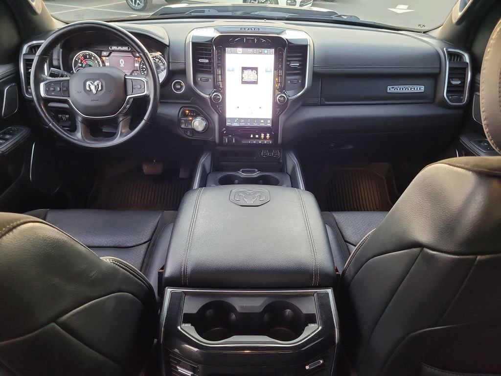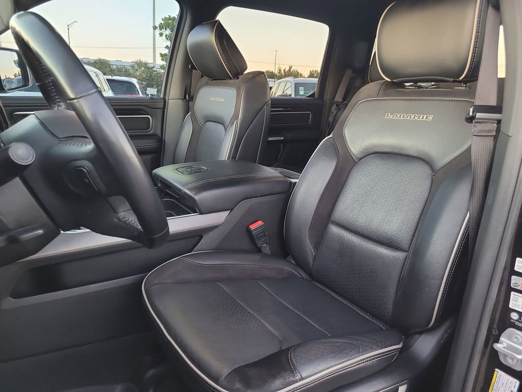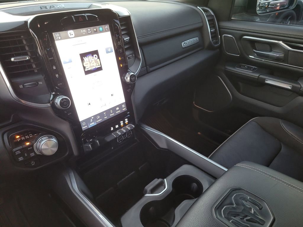 Laramie Level II Equipment Group (2nd Row In Floor Storage Bins, Auto High Beam Headlamp Control, Blind Spot & Cross Path Detection, Foam Bottle Insert (Door Trim Panel), GPS Navigation, harman/kardon 19 Speaker Premium Sound, ParkSense Front/Rear Park Assist w/Stop, Radio: Uconnect 5 Nav w/8.4" Display, Rain Sensitive Windshield Wipers, Remote Tailgate Release, Wireless Charging Pad, 4G LTE Wi-Fi Hot Spot, 8.4" Touchscreen Display, All R1 High Radios, All Radio Equipped Vehicles, Apple CarPlay, Connected Travel & Traffic Services, Connectivity - US/Canada, Disassociated Touchscreen Display, For Details, Visit DriveUconnect.com, For More Info, Call 800-643-2112, Global Telematics Box Module (TBM), Google Android Auto, GPS Antenna Input, HD Radio, Integrated Center Stack Radio, Integrated Voice Command w/Bluetooth, SiriusXM Radio Service, SiriusXM w/360L, and USB Host Flip), Night Edition (Accent Color Premium Power Mirrors, Auto-Dimming Exterior Driver Mirror, Black Exterior Truck Badging, Black Headlamp Bezels, Black Interior Accents, Black Painted Exterior Mirrors Caps, Body Color Door Handles, Body Color Front Bumper, Body Color Rear Bumper w/Step Pads, Convex Wide-Angle Mirror Insert, Dual Exhaust w/Black Tips, Exterior Mirrors Courtesy Lamps, Exterior Mirrors w/Heating Element, Exterior Mirrors w/Memory, Exterior Mirrors w/Supplemental Signals, Grille Surround 3 Black Texture 2 Black, Leather Trimmed Bucket Seats, Mopar Black Tubular Side Steps, Power-Folding Mirrors, Sport Performance Hood, Twill Film Appliques, #1 Seat Foam Cushion, 3 Rear Seat Head Restraints, 4 Way Front Headrests, Bucket Seats, Delete LED Lamp - Floor Console Bin, Driver Seat Memory, Front Seat Back Map Pockets, Full Length Upgraded Floor Console, Heated Front Seats, Heated Steering Wheel, Power 2-Way Driver Lumbar Adjust, Power 2-Way Passenger Lumbar Adjust, Power 8-Way Driver & Passenger Seats, Rear 60/40 Folding Seat, and Ventilated Front Seats), Quick Order Package 27H Laramie, 1500 Laramie, FCA US LLC Certified Pre-Owned Certified, 4D Crew Cab, HEMI 5.7L V8 Multi Displacement VVT, 8-Speed Automatic, 4WD, Diamond Black Crystal Pearlcoat, Black Leather, 10 Speakers, 12" Touchscreen Display, 3.21 Rear Axle Ratio, 4-Wheel Disc Brakes, 48V Belt Starter Generator, ABS brakes, Adjustable pedals, Air Conditioning, Alloy wheels, AM/FM radio: SiriusXM, Anti-Spin Differential Rear Axle, Apple CarPlay/Android Auto, Audio memory, Auto-dimming door mirrors, Auto-dimming Rear-View mirror, Automatic temperature control, Brake assist, Bumpers: chrome, Chrome Exterior Mirrors, Compass, Delay-off headlights, Driver door bin, Driver vanity mirror, Dual front impact airbags, Dual front side impact airbags, Electronic Stability Control, Front anti-roll bar, Front Center Armrest w/Storage, Front dual zone A/C, Front fog lights, Front reading lights, Front wheel independent suspension, Fully automatic headlights, Garage door transmitter, Heated door mirrors, Heated front seats, Heated steering wheel, Heavy-Duty Engine Cooling, Illuminated entry, Leather steering wheel, Leather Trim 40/20/40 Bench Seat, Low tire pr