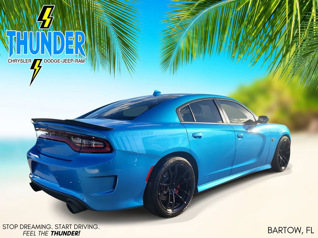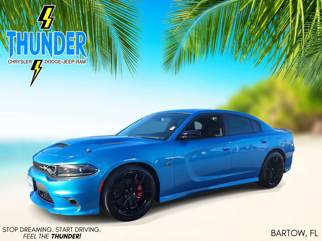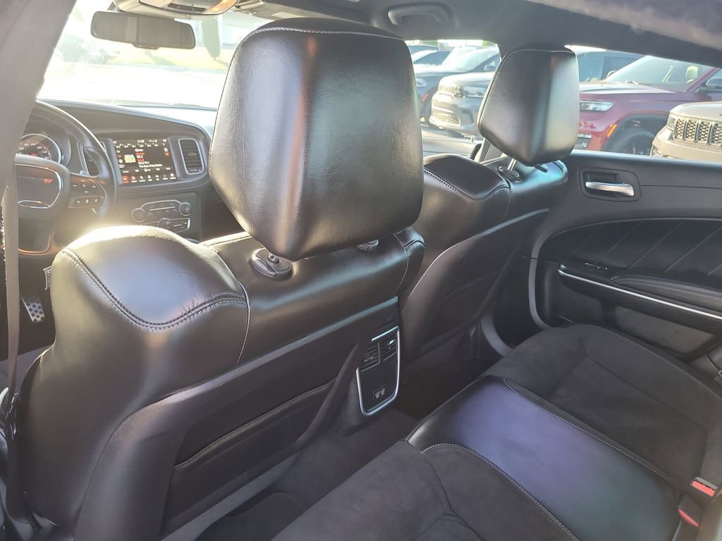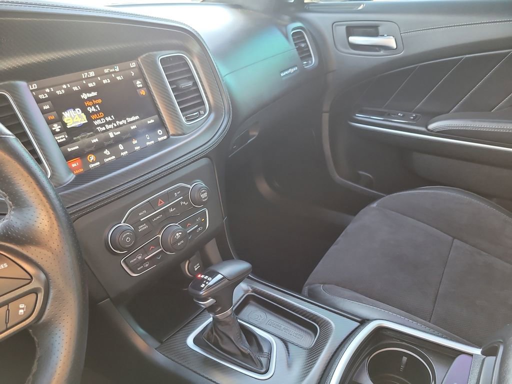 Carbon/Suede Interior Package (Real Carbon Fiber Interior Accents and Suede Headliner), Navigation & Travel Group (1-Yr SiriusXM Guardian Trial, 2-Piece Shark Fin Antenna, 4G LTE Wi-Fi Hot Spot, 5-Year SiriusXM Traffic Service, 5-Year SiriusXM Travel Link Service, 8.4" Touchscreen Display, Apple CarPlay, Compass Gauge, For Details, Visit DriveUconnect.com, Google Android Auto, GPS Antenna Input, GPS Navigation, HD Radio, Integrated Center Stack Radio, Integrated Voice Command w/Bluetooth, Media Hub (2 USB, AUX), Radio: Uconnect 4C Nav w/8.4" Display, SiriusXM Traffic Plus, SiriusXM Travel Link, and USB Host Flip), Plus Group (Auto Adjust In Reverse Exterior Mirrors, Auto-Dimming Exterior Driver Mirror, Black-Edged Premium Floormats, Blind Spot & Cross Path Detection, Blind Spot Memory/Power/Heat Mirror, Driver & Passenger Lower LED Lamps, Exterior Mirrors Courtesy Lamps, Exterior Mirrors w/Heating Element, Front Overhead LED Lighting, Power Tilt/Telescope Steering Column, Premium-Stitched Dash Panel, Scat Pack Logo Nappa/Alcantara Seat, Heated Front Seats, Power 2-Way Driver Lumbar Adjust, Power 2-Way Passenger Lumbar Adjust, Power Front Driver/Passenger Seats, Radio/Driver Seat/Mirrors Memory, Rear Armrest w/Cupholder Seat, and Ventilated Front Seats), Quick Order Package 21W Scat Pack, Technology Group (Adaptive Cruise Control w/Stop, Advanced Brake Assist, Auto High Beam Headlamp Control, Full Speed FWD Collision Warn Plus, Lane Departure Warning Plus, and Rain Sensitive Windshield Wipers), Super Bee Special Edition w/2W (Adaptive Damping Suspension and Wheels: 20" x 9.5" Low-Gloss Black Knurled), Charger R/T Scat Pack, FCA US LLC Certified Pre-Owned Certified, 4D Sedan, SRT HEMI 6.4L V8 MDS, 8-Speed Automatic, RWD, B5 Blue Pearlcoat, Black Leather, 4-Wheel Disc Brakes, 6 Speakers, ABS brakes, Adaptive Damping Suspension (DISC), Air Conditioning, Alloy wheels, AM/FM radio: SiriusXM, Anti-whiplash front head restraints, Apple CarPlay/Android Auto, Auto-dimming Rear-View mirror, Automatic temperature control, Brake assist, Bumpers: body-color, Cloth Performance Seats w/Heat, Compass, Delay-off headlights, Driver door bin, Driver vanity mirror, Dual front impact airbags, Dual front side impact airbags, Electronic Stability Control, Emergency communication system: SiriusXM Guardian, Four wheel independent suspension, Front anti-roll bar, Front Bucket Seats, Front Center Armrest, Front dual zone A/C, Front fog lights, Front License Plate Bracket, Front reading lights, Fully automatic headlights, Garage door transmitter: HomeLink, Heated door mirrors, Heated front seats, Heated steering wheel, Illuminated entry, Knee airbag, Leather Shift Knob, Low tire pressure warning, Occupant sensing airbag, Outside temperature display, Overhead airbag, Overhead console, Panic alarm, ParkView Rear Back-Up Camera, Passenger door bin, Passenger vanity mirror, Power door mirrors, Power driver seat, Power steering, Power windows, Radio: Uconnect 4C w/8.4" Display, Rear anti-roll bar, Rear reading lights, Rear seat center armrest, Rear window defroster, Remote keyless entry, Security system, Speed control, Speed-Sens