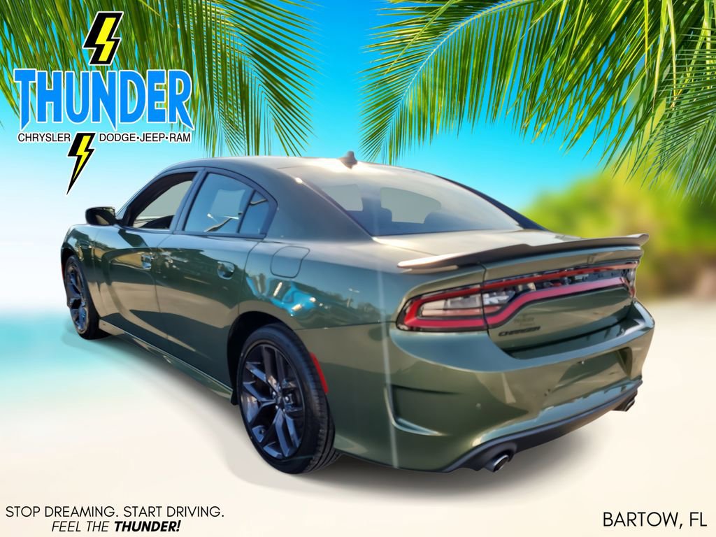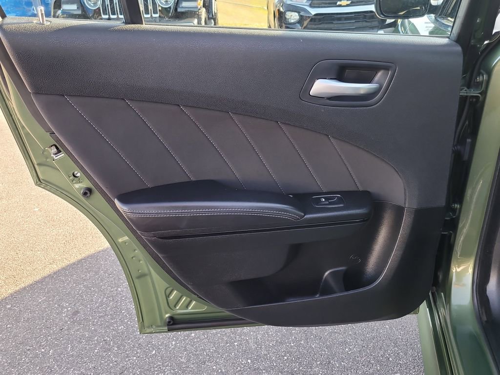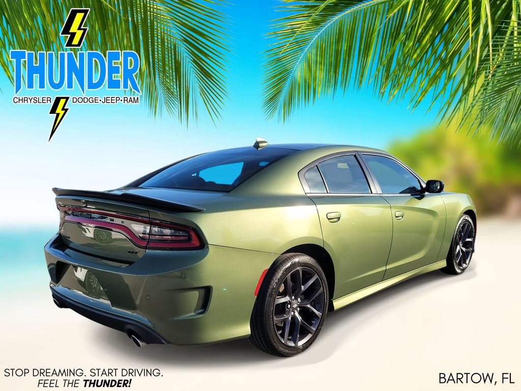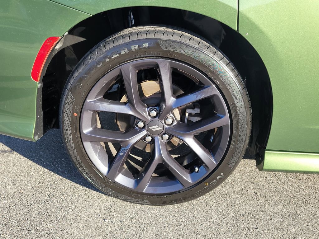 Blacktop Package (Black 1-Piece Performance Spoiler, Black Badge, Black Dodge Grille Badge, Gloss Black I/P Cluster Trim Rings, Rhombi 2-Pc Wheel Center Cap, Satin Black Charger Decklid Badge, Satin Black Dodge Tail Lamp Badge, and Wheels: 20" x 8" Black Noise Painted), Quick Order Package 2EH, Charger GT, FCA US LLC Certified Pre-Owned Certified, 4D Sedan, 3.6L V6 24V VVT, 8-Speed Automatic, RWD, F8 Green, Black Cloth, 1-Yr SiriusXM Guardian Trial, 2-Piece Shark Fin Antenna, 4-Wheel Disc Brakes, 4G LTE Wi-Fi Hot Spot, 6 Speakers, 8.4" Touchscreen Display, ABS brakes, Air Conditioning, Alloy wheels, AM/FM radio: SiriusXM, Anti-whiplash front head restraints, Apple CarPlay, Apple CarPlay/Android Auto, Auto-dimming Rear-View mirror, Automatic temperature control, Brake assist, Bumpers: body-color, Cloth Performance Seats, Compass, Delay-off headlights, Driver door bin, Driver vanity mirror, Dual front impact airbags, Dual front side impact airbags, Electronic Stability Control, Emergency communication system: SiriusXM Guardian, For Details, Visit DriveUconnect.com, Four wheel independent suspension, Front anti-roll bar, Front Bucket Seats, Front Center Armrest, Front dual zone A/C, Front License Plate Bracket, Front reading lights, Fully automatic headlights, Garage door transmitter: HomeLink, Google Android Auto, GPS Antenna Input, HD Radio, Heated door mirrors, Illuminated entry, Integrated Center Stack Radio, Integrated Voice Command w/Bluetooth, Knee airbag, Leather Shift Knob, Low tire pressure warning, Manufacturer's Statement of Origin, Media Hub (2 USB, AUX), Occupant sensing airbag, Outside temperature display, Overhead airbag, Overhead console, Panic alarm, ParkView Rear Back-Up Camera, Passenger door bin, Passenger vanity mirror, Power 2-Way Driver Lumbar Adjust, Power 8-Way Driver Seat, Power door mirrors, Power driver seat, Power steering, Power windows, Radio: Uconnect 4C w/8.4" Display, Rear anti-roll bar, Rear Armrest w/Cupholder Seat, Rear reading lights, Rear seat center armrest, Rear window defroster, Remote keyless entry, Speed control, Speed-Sensitive Wipers, Split folding rear seat, Spoiler, Steering wheel mounted audio controls, Tachometer, Telescoping steering wheel, Tilt steering wheel, Traction control, Trip computer, USB Host Flip, Variably intermittent wipers, and Wheels: 20" x 8" Satin Carbon PainteD.