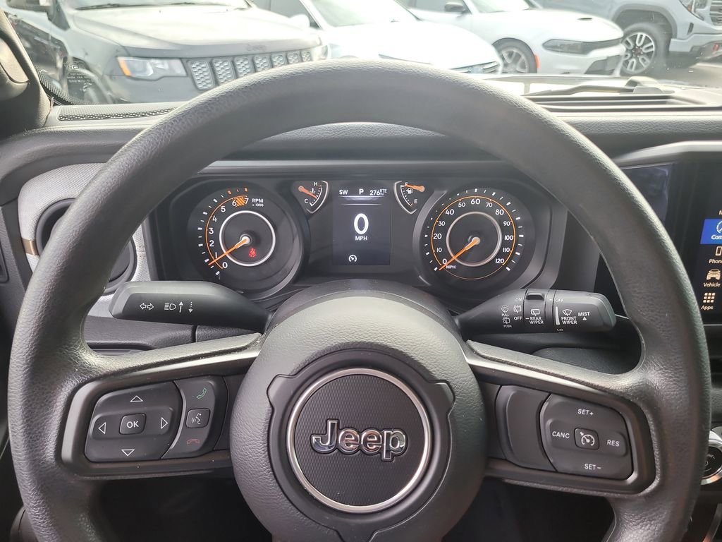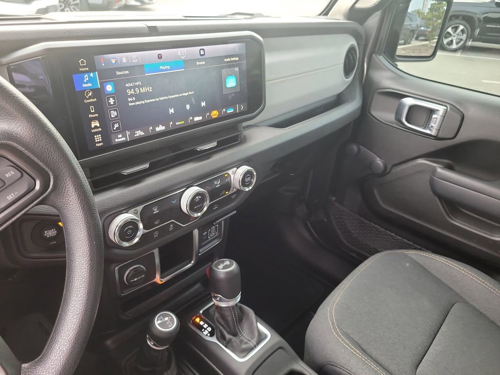 Quick Order Package 24B Sport, Wrangler Sport, FCA US LLC Certified Pre-Owned Certified, 2D Sport Utility, 3.6L V6 24V VVT, 8-Speed Automatic, 4WD, Granite Crystal Metallic Clearcoat, Black Cloth, 110 MPH Vehicle Max Speed Calibration, 3.45 Overall Top Gear Ratio, 4-Wheel Disc Brakes, 8 Speakers, ABS brakes, AM/FM radio: SiriusXM with 360L, Apple CarPlay/Android Auto, Auxiliary Battery, Black 3-Piece Hard Top, Brake assist, Cloth Low-Back Bucket Seats, Compass, Deep Tint Sunscreen Windows, Delay-off headlights, Driver door bin, Driver vanity mirror, Dual front impact airbags, Dual front side impact airbags, Electronic Stability Control, Freedom Panel Storage Bag, Front anti-roll bar, Front Bucket Seats, Front Center Armrest w/Storage, Front fog lights, Front reading lights, Integrated roll-over protection, Low tire pressure warning, No Soft Top, Non-Locking Fuel Cap w/o Discriminator, Normal Duty Suspension, Occupant sensing airbag, Outside temperature display, Overhead airbag, ParkView Rear Back-Up Camera, Passenger door bin, Passenger vanity mirror, Power steering, Radio data system, Radio: Uconnect 5 w/12.3" Display, Rear anti-roll bar, Rear reading lights, Rear Window Defroster, Rear Window Wiper/Washer, Speed control, Start-Stop Dual Battery System, Steering wheel mounted audio controls, Tachometer, Telescoping steering wheel, Tilt steering wheel, Traction control, Trip computer, Variably intermittent wipers, and Wheels: 17" x 7.5" Black Steel Styled.