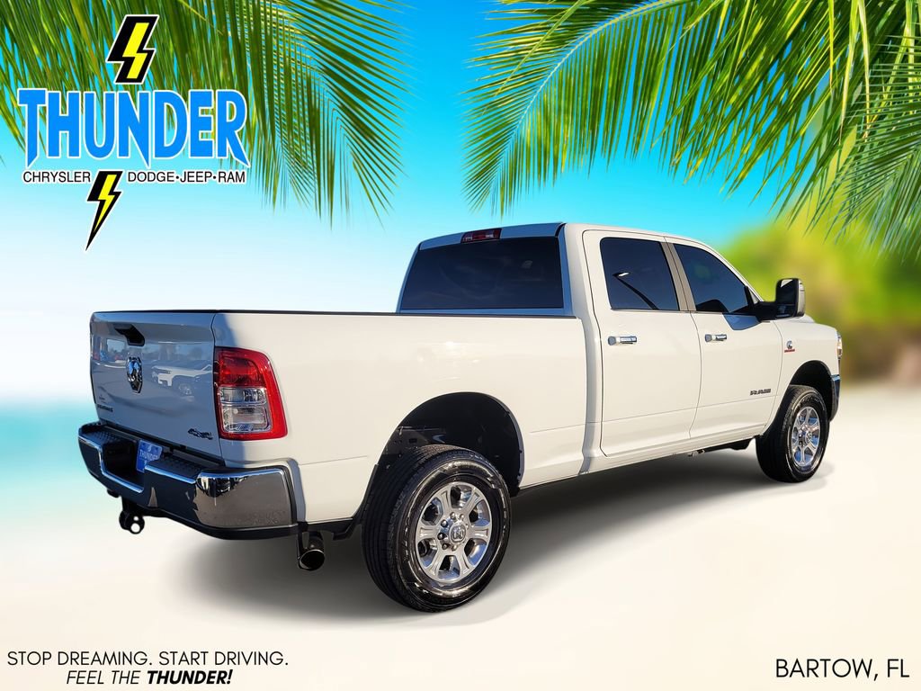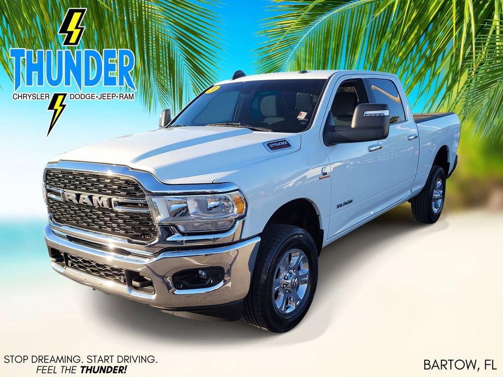 Cold Weather Group (Engine Block Heater and MOPAR Winter Front Grille Cover), Heavy Duty Snow Plow Prep Group (220 Amp Alternator), Level 1 Equipment Group (2nd Row In Floor Storage Bins, 4G LTE Wi-Fi Hot Spot, 8.4" Touchscreen Display, Apple CarPlay, Auto Power-Folding Mirrors, Big Horn IP Badge, Black Exterior Mirrors, Bluetooth Handsfree Phone & Audio, Center Hub, Connectivity - US/Canada, Dual Glove Boxes, Exterior Mirrors Courtesy Lamps, Exterior Mirrors w/Heating Element, Exterior Mirrors w/Supplemental Signals, Foam Bottle Insert (Door Trim Panel), Footwell Courtesy Lamp, For Details, Visit DriveUconnect.com, For More Info, Call 800-643-2112, Forward & Reverse Utility Lights, Front Fog Lamps, Global Telematics Box Module (TBM), Glove Box Lamp, Google Android Auto, GPS Antenna Input, Integrated Center Stack Radio, Integrated Voice Command w/Bluetooth, Leather Wrapped Steering Wheel, Locking Lower Glove Box, Mirror Running Lights, Power Adjust Mirrors, Power Adjustable Convex Aux Mirrors, Power Heated Fold Telescope Mirrors, Power Telescoping Mirrors, Premium Cloth 40/20/40 Bench Seat, Radio: Uconnect 5 W w/8.4" Display (A62), Rear Dome w/On/Off Switch Lamp, Selectable Tire Fill Alert, SiriusXM Radio Service, SiriusXM Satellite Radio, Steering Wheel Mounted Audio Controls, Wheels: 18" x 8.0" Polished Aluminum, 2 Way Rear Headrest Seat, 4 Way Front Headrests, 40/20/40 Split Bench Seat, Front Armrest w/Cupholders, Front Center Seat Cushion Storage, Front Seat Back Map Pockets, Manual Adjust 4-Way Front Passenger Seat, Power 2-Way Driver Lumbar Adjust, Power Adjust 8-Way Driver Seat, Rear 60/40 Folding Seat, Remote USB Port - Charge Only, and Storage Tray), Quick Order Package 2GZ Big Horn, Quick Order Package 2HZ Big Horn, 2500 Big Horn, FCA US LLC Certified Pre-Owned Certified, 4D Crew Cab, Cummins 6.7L I6 Turbodiesel, 6-Speed Automatic, 4WD, Bright White Clearcoat, Diesel Gray/Black Cloth, 3.73 Axle Ratio, 4-Wheel Disc Brakes, 6 Speakers, ABS brakes, Active Noise Control System, Air Conditioning, Brake assist, Bumpers: chrome, Center Stack Storage Drawer, Chrome Flat Cab-Length Side Steps, Cloth 40/20/40 Bench Seat, Compass, Delay-off headlights, Driver door bin, Dual front impact airbags, Dual front side impact airbags, Electronic Stability Control, Electronically Controlled Throttle, Emergency communication system: SiriusXM Guardian, Front anti-roll bar, Front Center Armrest w/Storage, Front License Plate Bracket, Front reading lights, Fully automatic headlights, Heated door mirrors, Illuminated entry, Low tire pressure warning, Manual Adjust 4-Way Driver Seat, Manufacturer's Statement of Origin, MOPAR Front & Rear Rubber Floor Mats, MOPAR Spray In Bedliner, Occupant sensing airbag, Outside temperature display, Overhead airbag, Overhead console, Panic alarm, ParkSense Front/Rear Park Assist System, ParkView Rear Back-Up Camera, Passenger door bin, Passenger vanity mirror, Power door mirrors, Power steering, Power windows, Premium Cloth 40/20/40 Bench Seat (DISC), Radio data system, Radio: Uconnect 3 w/5" Display, Radio: Uconnect 5 W w/8.4" Display, Rear anti-roll Work Truck